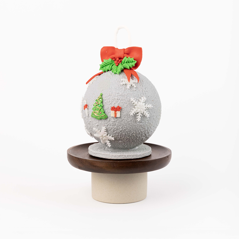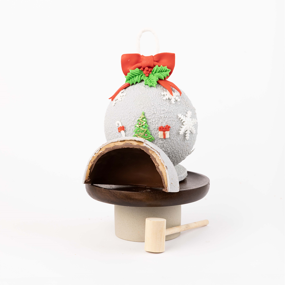 A handcrafted 480g Belgian milk and white chocolate piece featuring hand decorated edible festive details, fully edible and perfect for gifting or dessert displays.