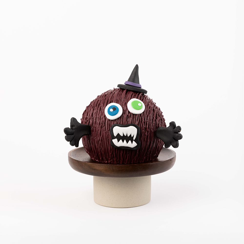 A 3D dark chocolate spooky smash featuring 450 g of rich dark chocolate, presented in a 16×16×25 cm box and includes one hammer. the truffle flavors inside are pistachio, hazelnut, peanut, speculoos, caramel, and rocher.