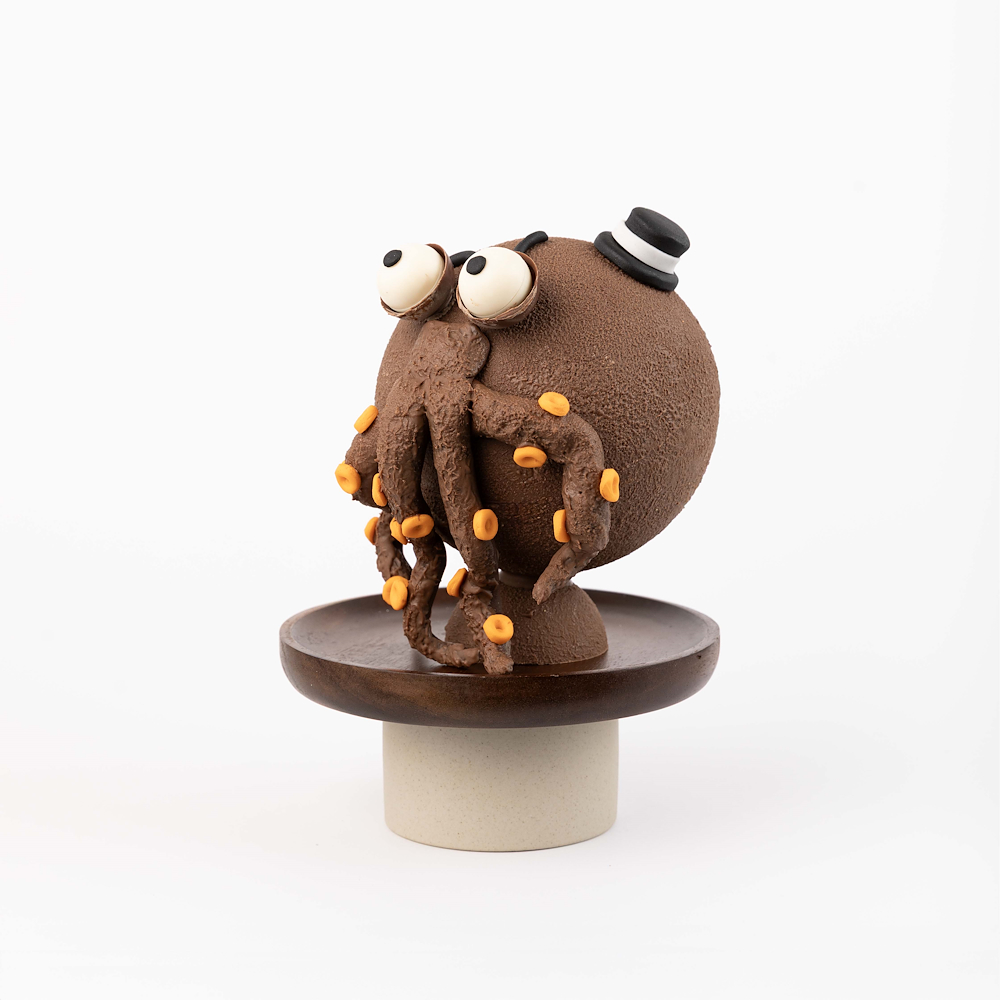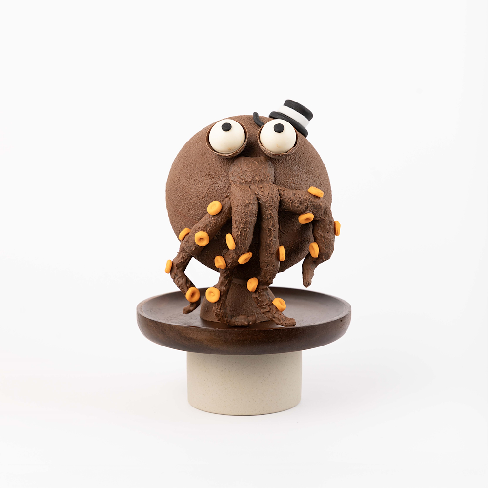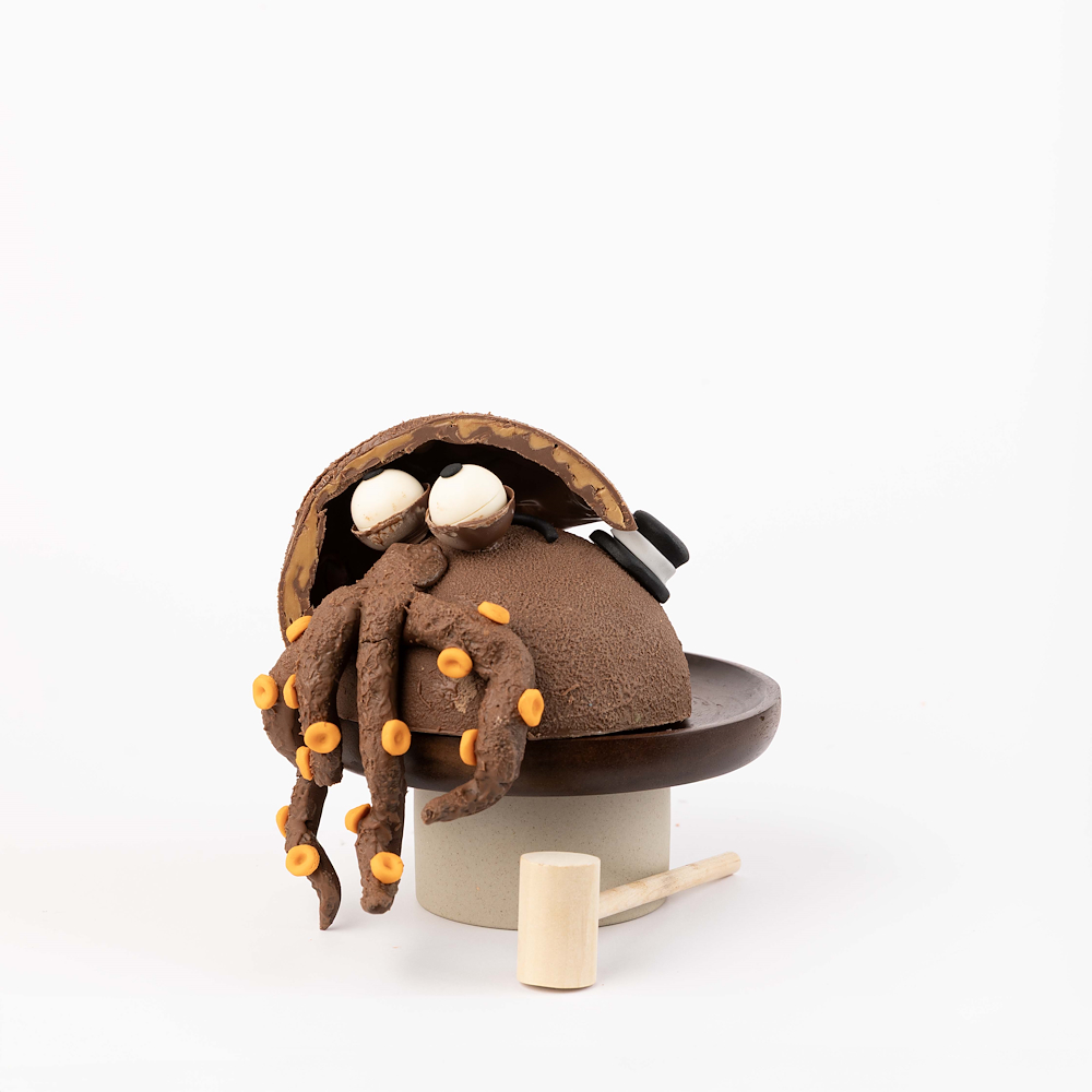 A 3D milk chocolate octo smash featuring 540 g of smooth milk chocolate, presented in a 16×16×25 cm box and includes one hammer. the truffle flavors inside are pistachio, hazelnut, peanut, speculoos, caramel, and rocher.