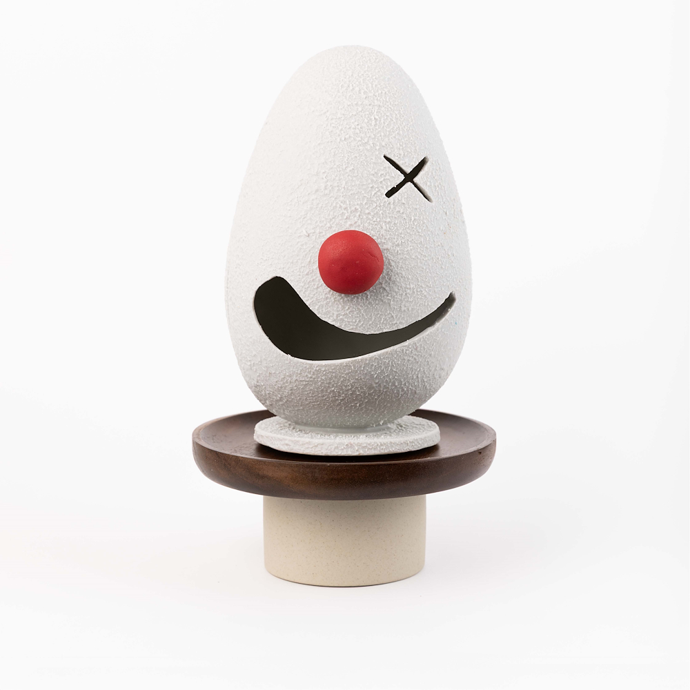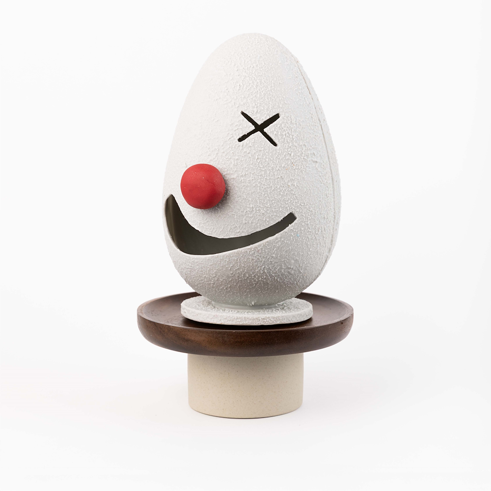 A 3D clown egg smash featuring 720 g of rich chocolate, presented in a 16×16×25 cm box and includes one hammer. the truffle flavors inside are pistachio, hazelnut, peanut, speculoos, caramel, and rocher.