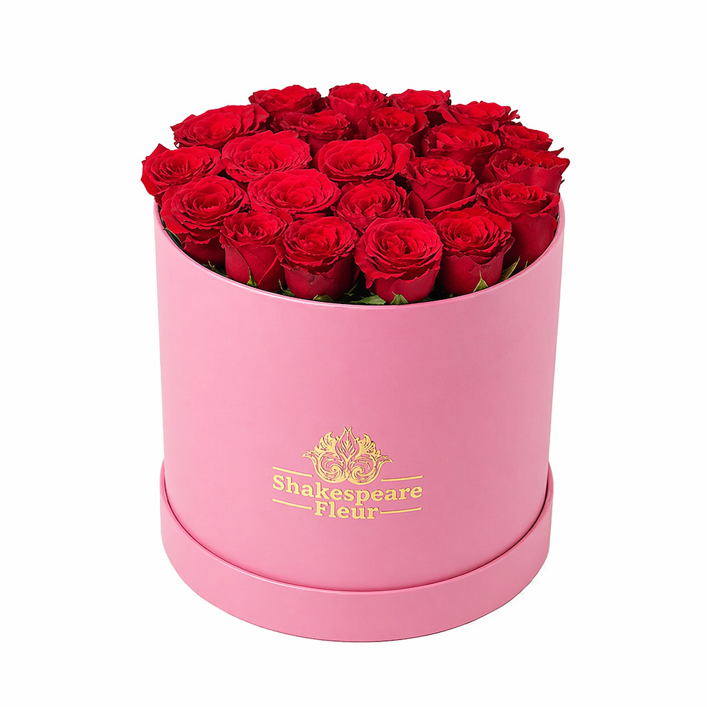 An elegant pink box featuring 15 premium red roses, beautifully arranged to express love and joy. A perfect gift for happy occasions, adding a touch of sophistication and creating a memorable impression.