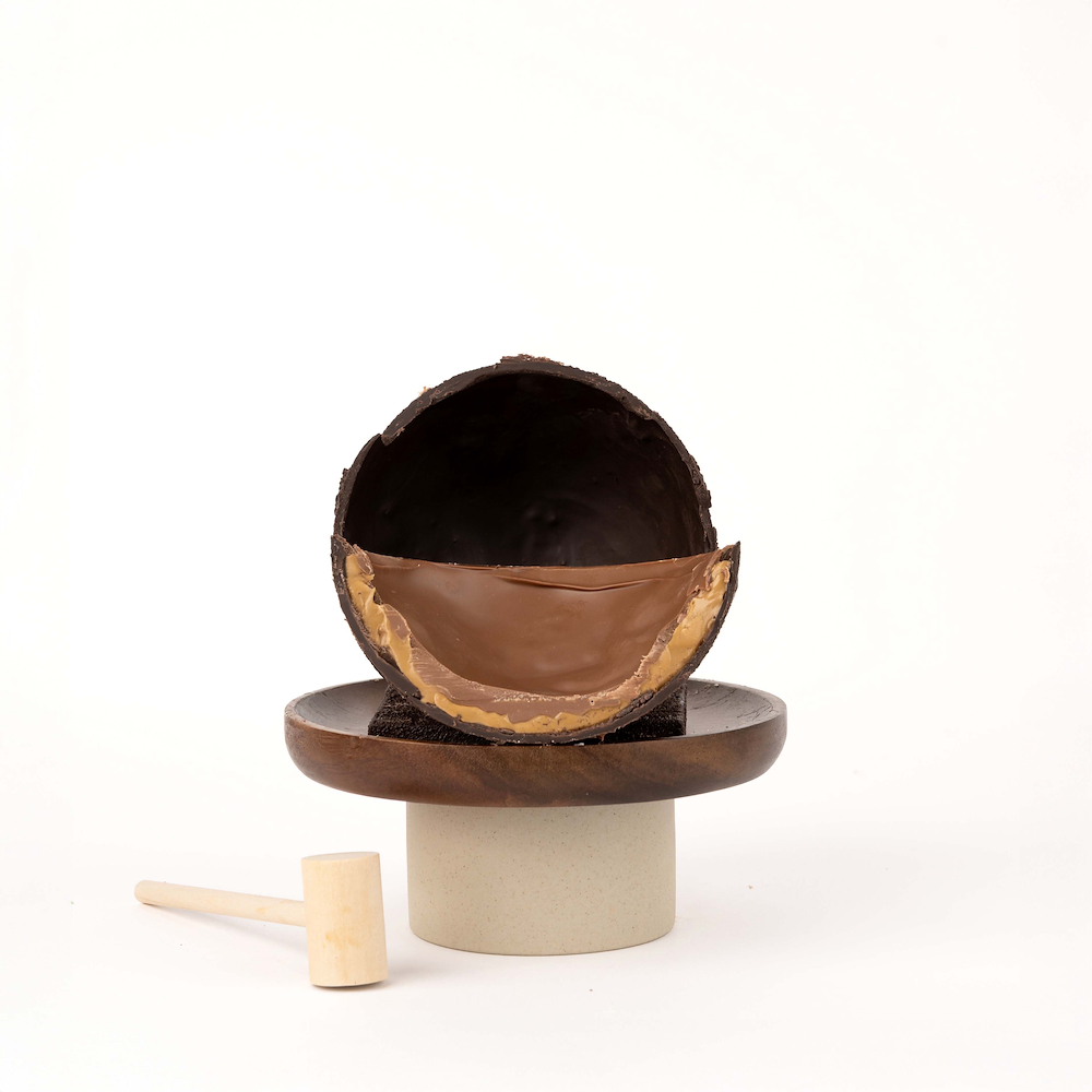 شوكولاتة للكسر على شكل الوحش ثلاثية الأبعاد، مناسبة لتجمعات الهالوين وتأتي مع مطرقة. وزن الشوكولاتة: 580 جرام. حجم الشوكولاتة: 30 × 13 × 16 سم. حجم العلبة: 21 × 21 × 25 سم. الحشوات: الفستق الحلبي، البندق، الفول السوداني، السبيكولوس، الكراميل والروشيه.