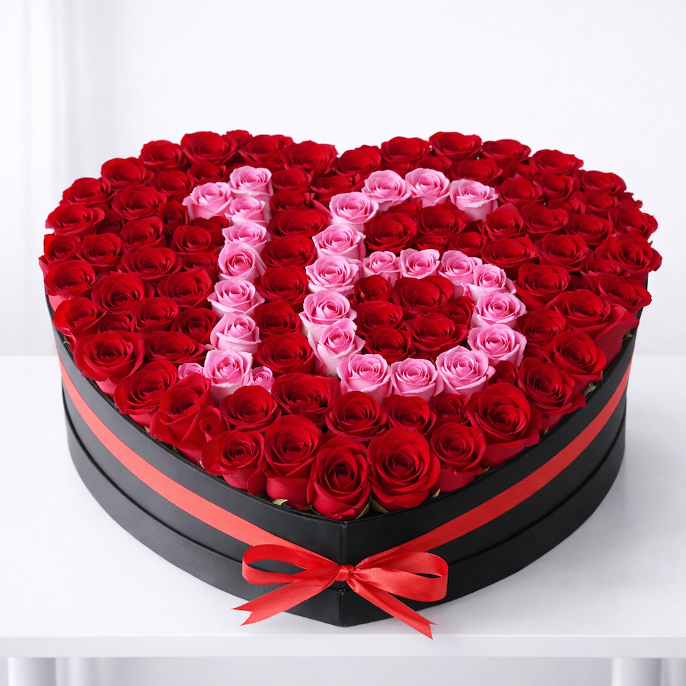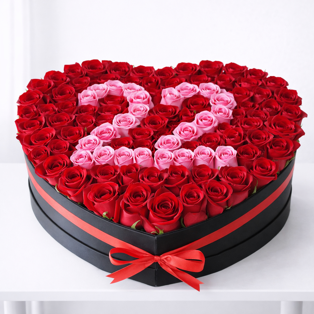 تنسيق مميز ولافت مكوّن من 100 وردة جوري طبيعية مرتبة داخل صندوق فاخر على شكل قلب، مع أرقام مخصّصة مصممة باستخدام ورود جوري وردية لإبرازها بشكل أنيق. يُعد هذا البوكس خيارًا مثالياً للاحتفال بأعياد الميلاد، الذكرى السنوية، المناسبات الخاصة، أو تواريخ مهمة، حيث يضيف لمسة شخصية فاخرة ويجعل الهدية لا تُنسى.