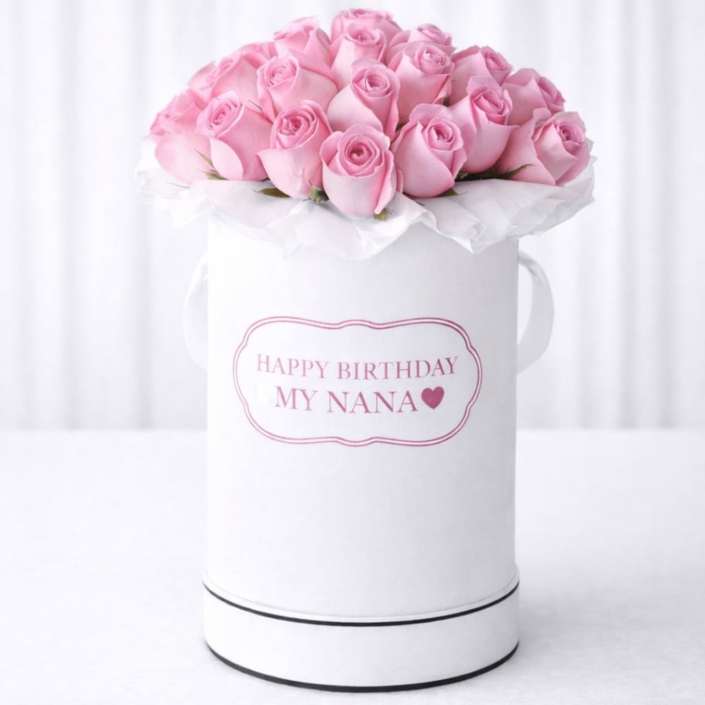 تنسيق أنيق يضم 30 زهرة جوري وردية طازجة مرتبة بعناية داخل بوكس دائري أبيض راقي. هذا التنسيق مثالي للتعبير عن الحب والإهتمام والمشاعر الجميلة، ويعد خياراً رائعاً لأعياد الميلاد، المناسبات الخاصة، والهدايا الراقية.