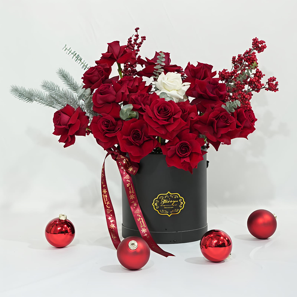 تنسيق فاخر يجمع بين أناقة الجوري الوردي والأبيض مع إشراقة دوار الشمس، مثالي للهدايا الراقية.