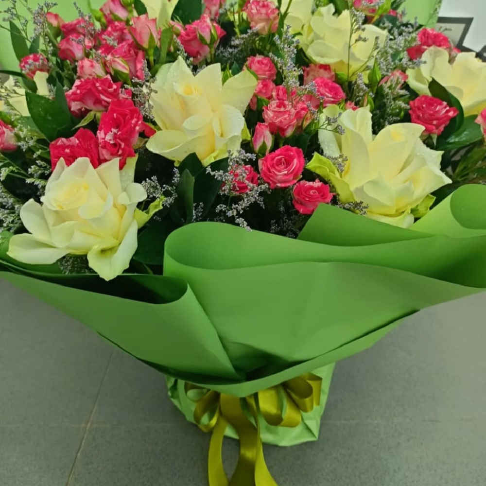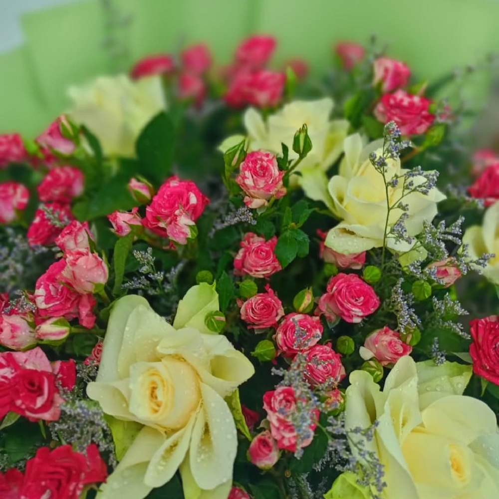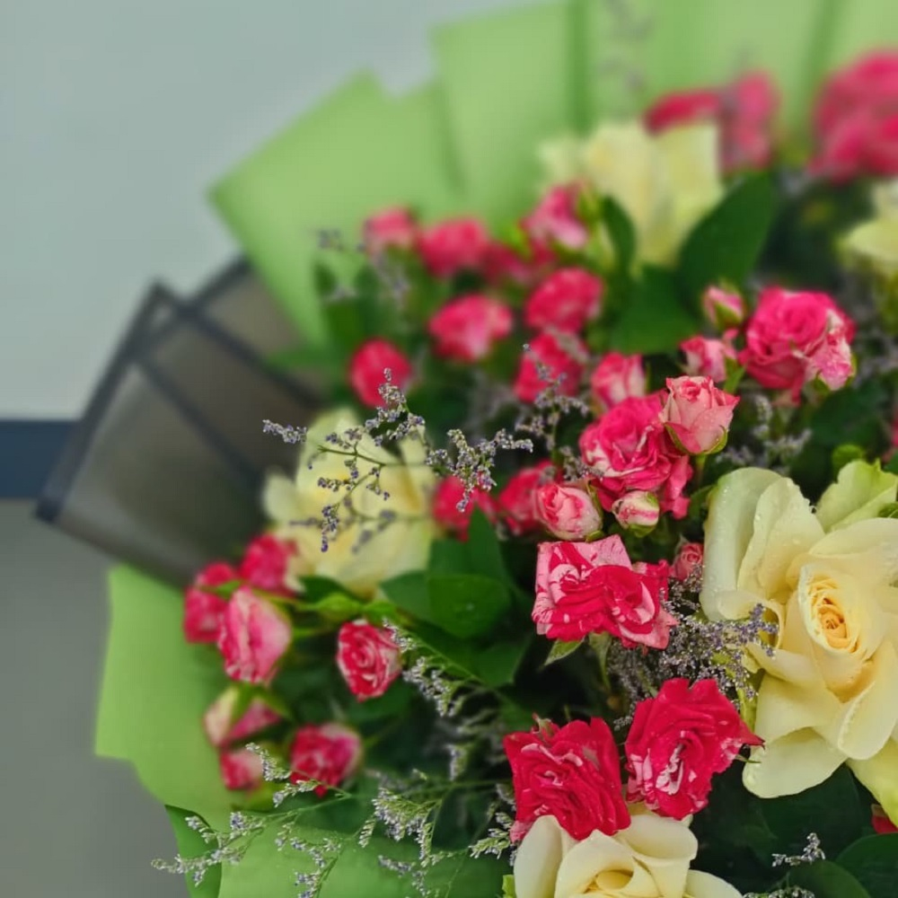 باقة يد تحتوي على الجوري والبيبي جوري.