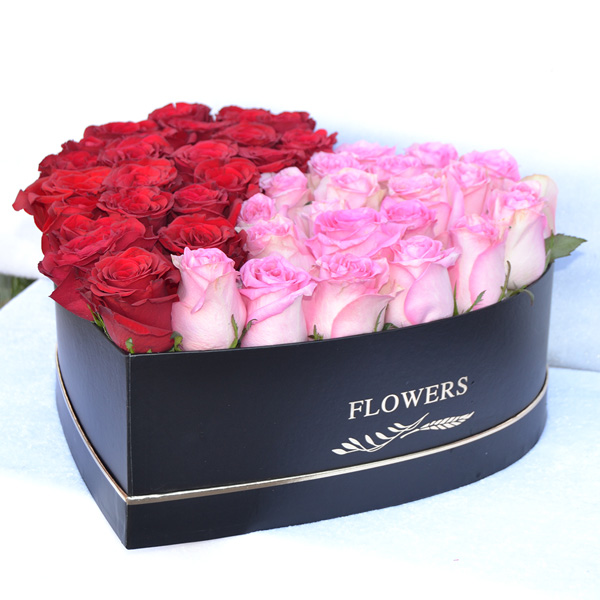 ورود حمراء وشوكولاتة فيريرو روشيه في صندوق على شكل قلب.