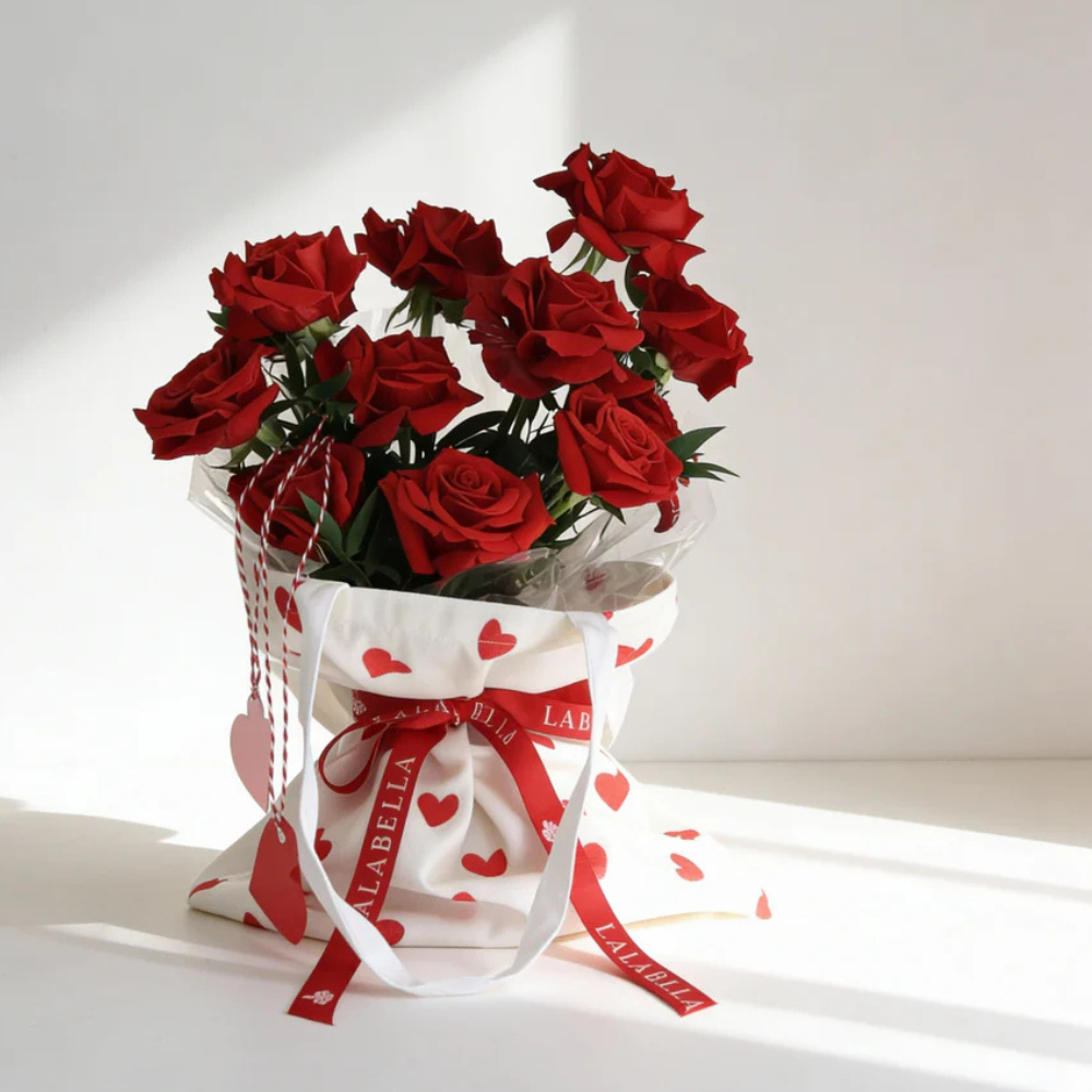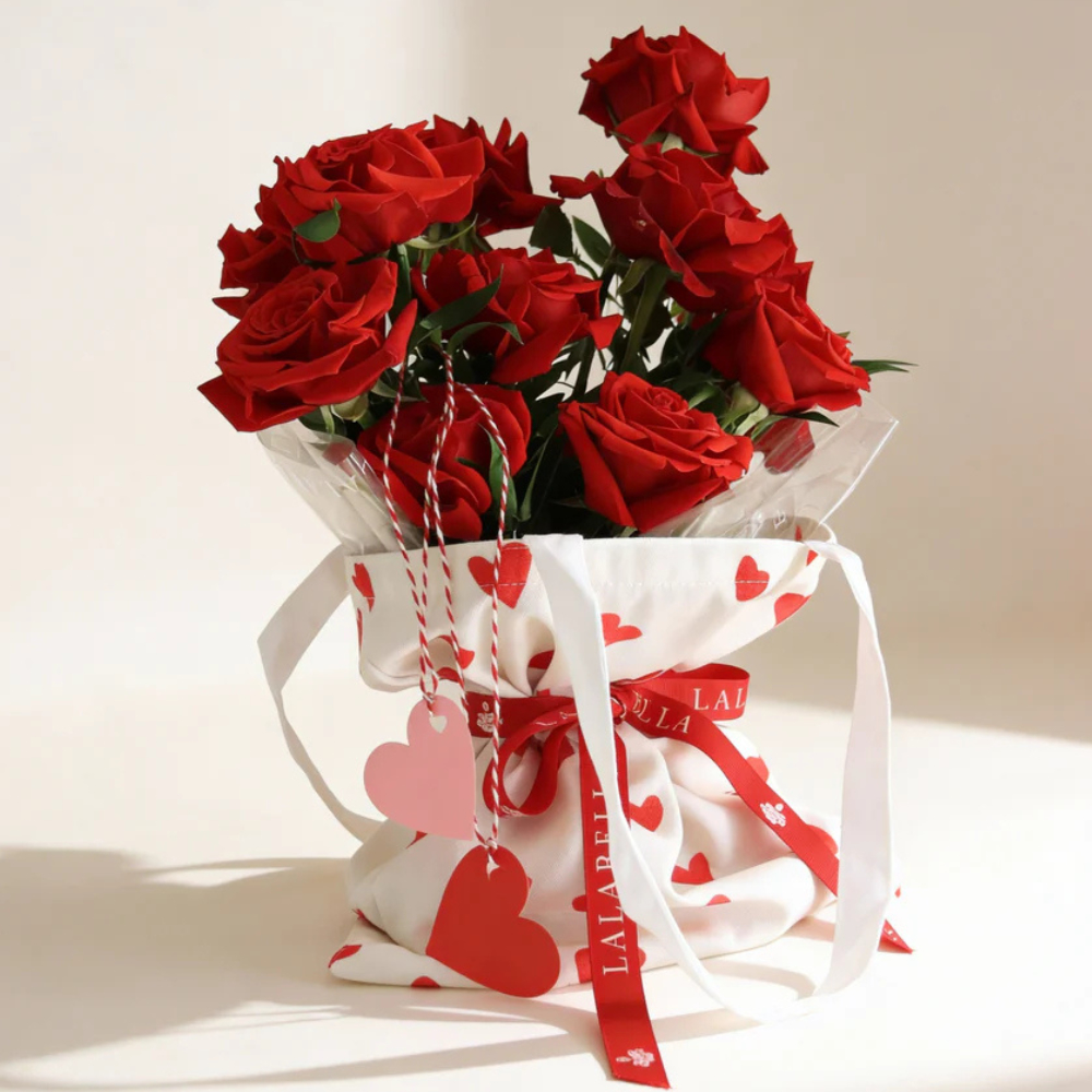 اجعل القلوب تخفق مع هذا الباقة الساحرة ليوم الحب التي تضم 10 زهور جوري حمراء مذهلة، مصممة بأناقة في حقيبة على شكل قلب مع بطاقات حب لطيفة.