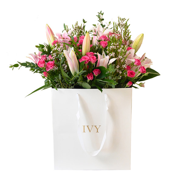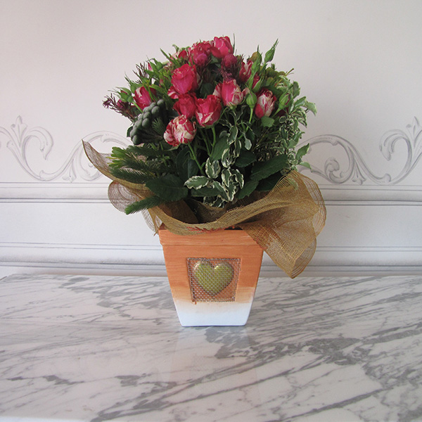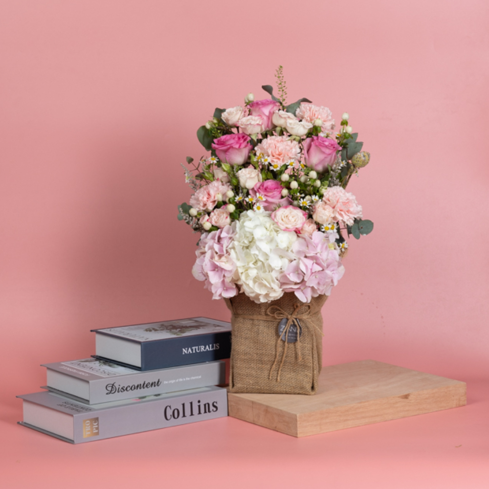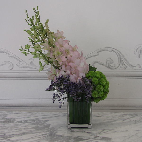 مزيج الزهور مرتبة في مزهرية زجاجية.