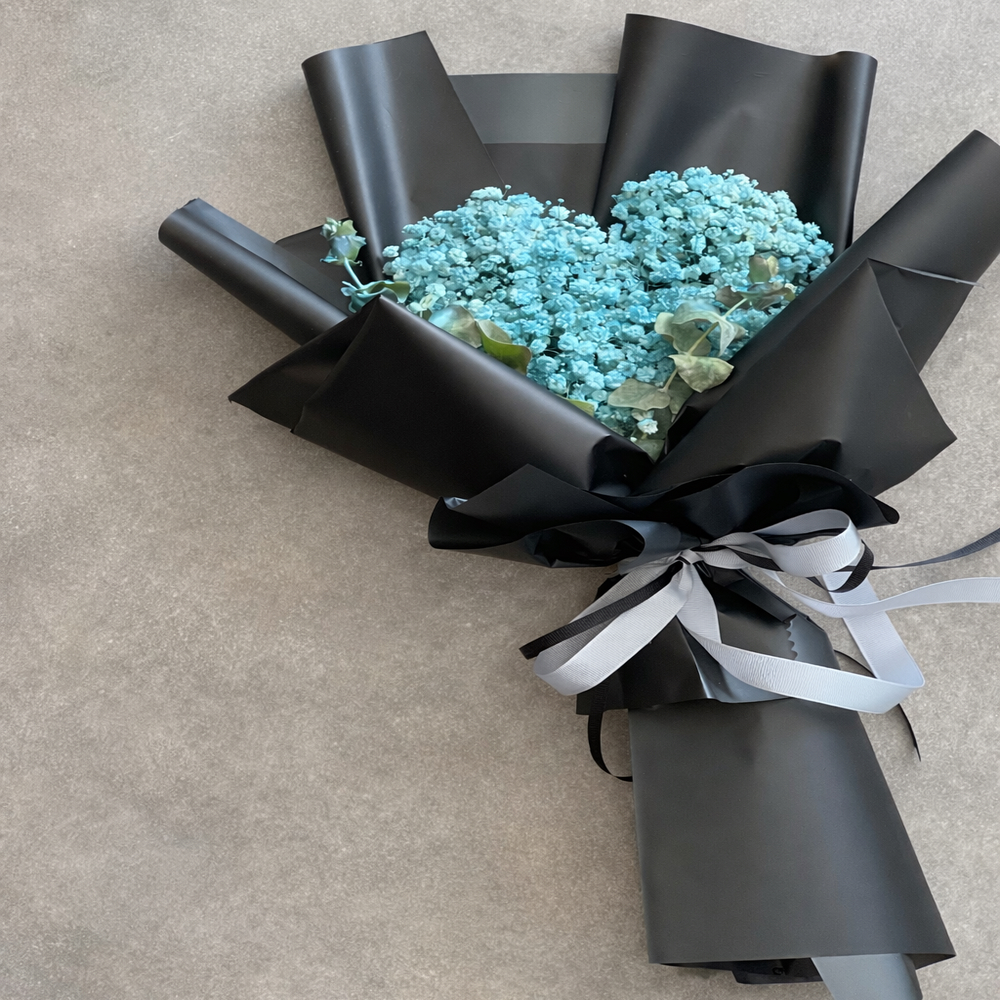 باقة جميلة تتألف من الجيربيرا الأحمر ومغلفة بأناقة بورق أخضر ومزينة بشريطة حمراء.