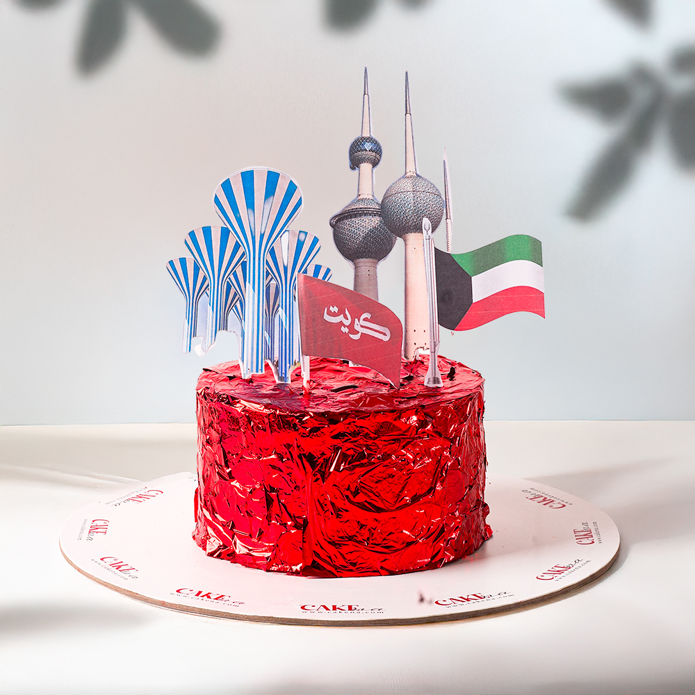 كيكة الشوكولاتة الرطبة بالفوندا، لونها بنفسك تأتي مع الفرش والألوان الخاصة بعلم الكويت.