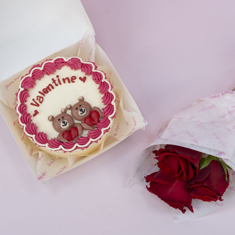 كيكة البينتو بالشوكولاتة بحجم 4 إنش، تكفي شخصين. تأتي مع 3 زهور جوري.