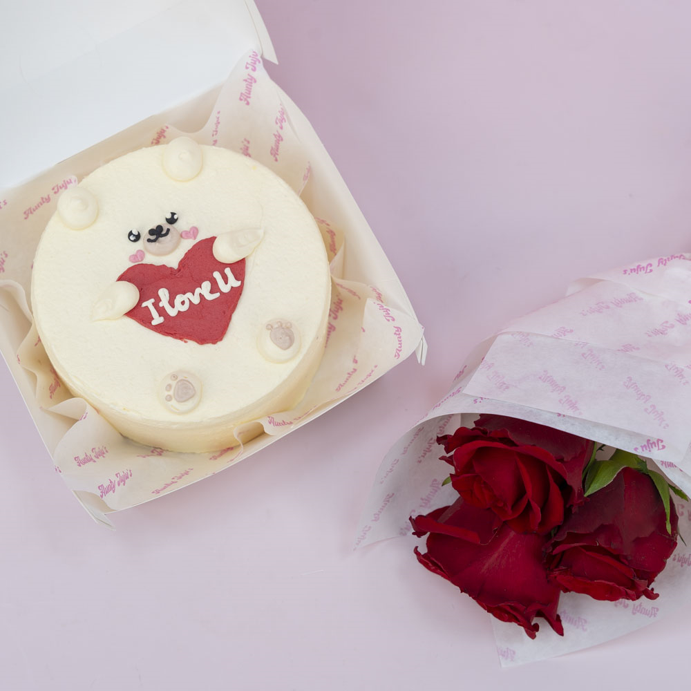 كيكة البينتو بالشوكولاتة بحجم 4 إنش، تكفي شخصين. تأتي مع 3 زهور جوري.
