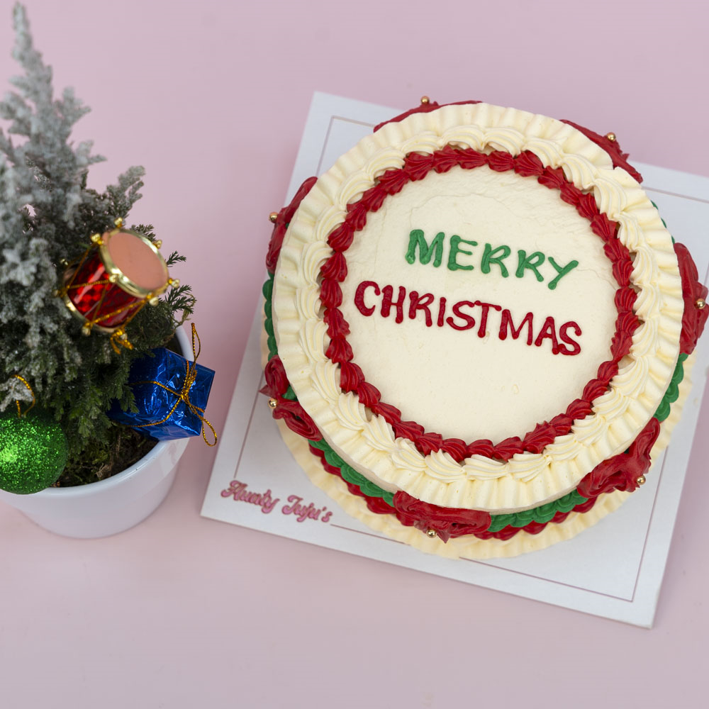كيكة لذيذة بنكهة الشوكولاتة بحجم 6 بوصات مع شجرة عيد الميلاد الصغيرة.