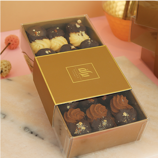 تحتوي العلبة على حلوى الهلالية اللذيذة السادة والمغطاة بالشوكولاتة.