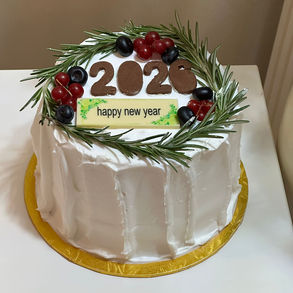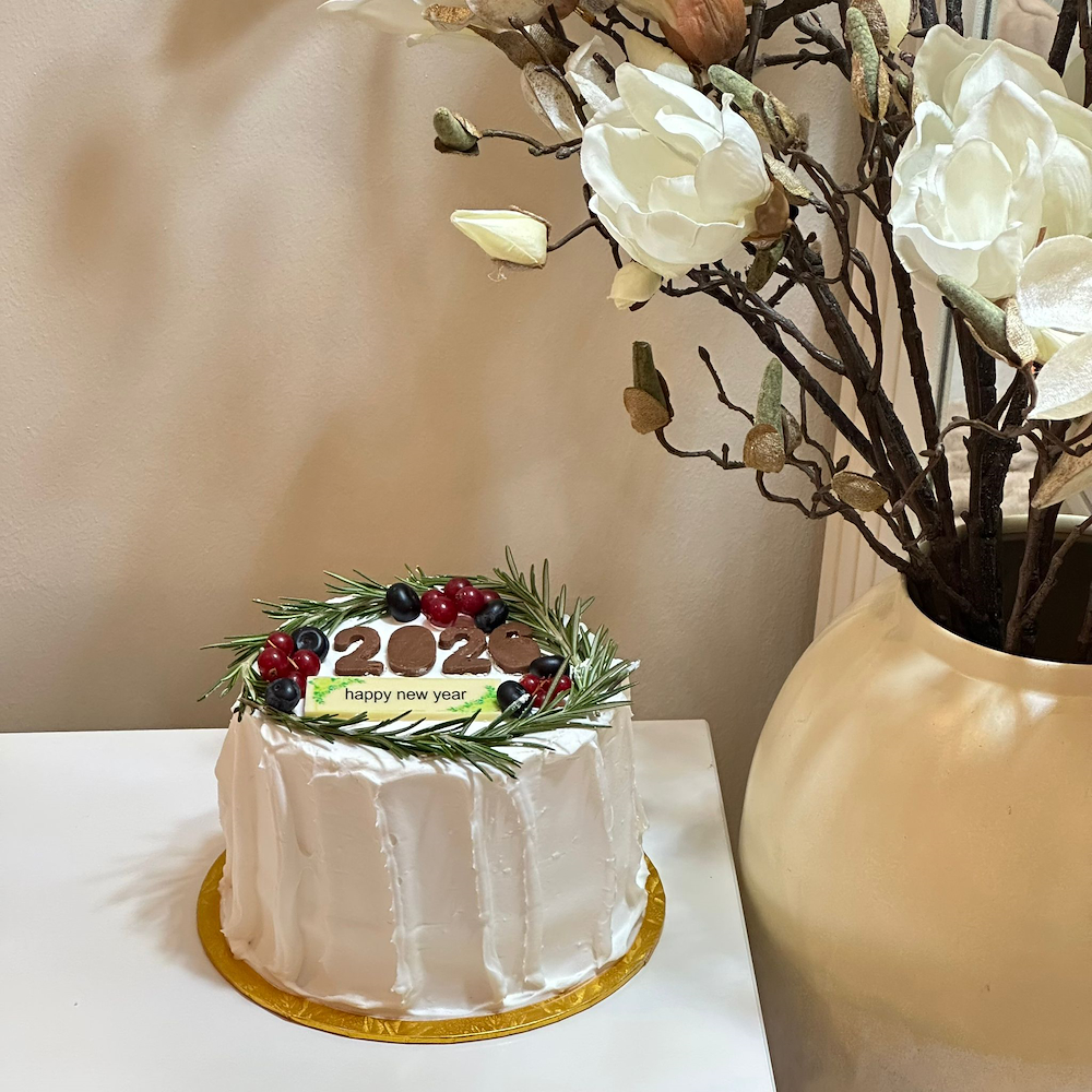 كيكة فانيلا كلاسيكية بتصميم للاحتفال براس السنة.