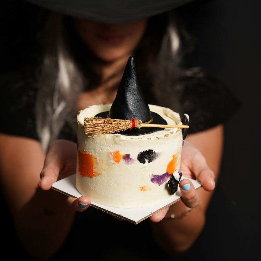كيكة الشوكولاتة بحجم 4 إنش بتصميم الهالوين، تكفي من شخص الى شخصين.