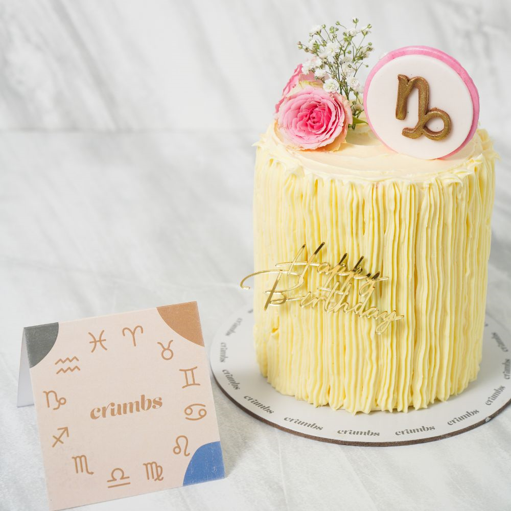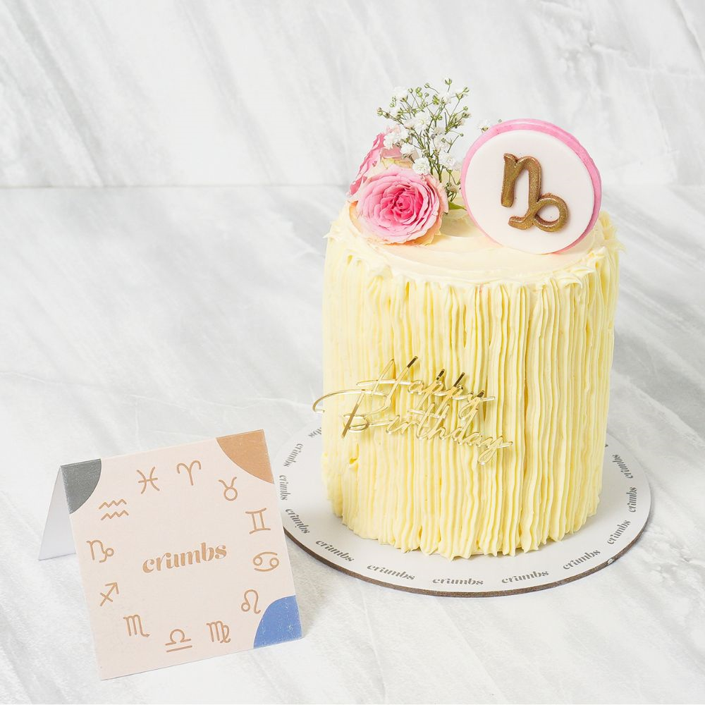 كيكة عيد ميلاد رائعة بطابع برج الجدي مثالية للاحتفال بيومك الخاص. هذه الكيكة الجميلة من الأبراج تكفي لـ 6 إلى 8 أشخاص.