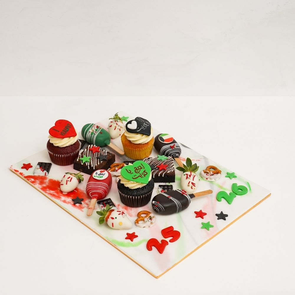 مجموعة مختارة من الحلويات للإحتفال باليوم الوطني تكفي 6 إلى 9 أشخاص.
