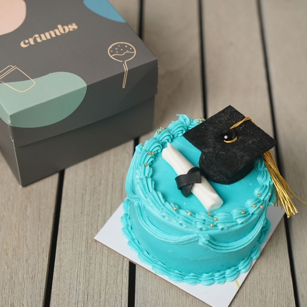 كيكة التخرج بحجم 4 إنش تكفي من شخص إلى شخصين. نكهة الكيك ستكون الشوكولاتة ما لم يتم طلب نكهة أخرى.