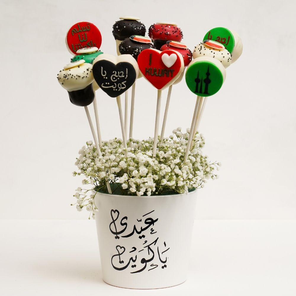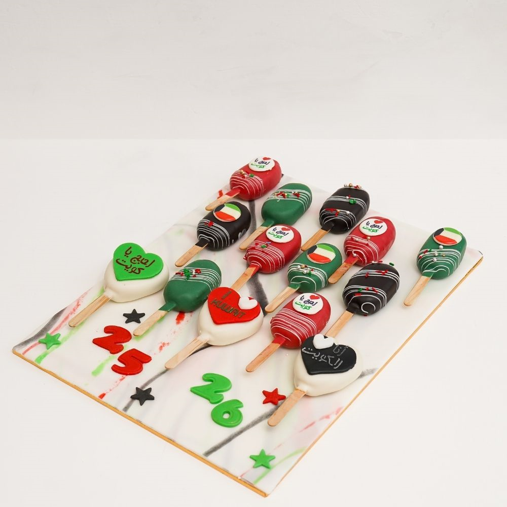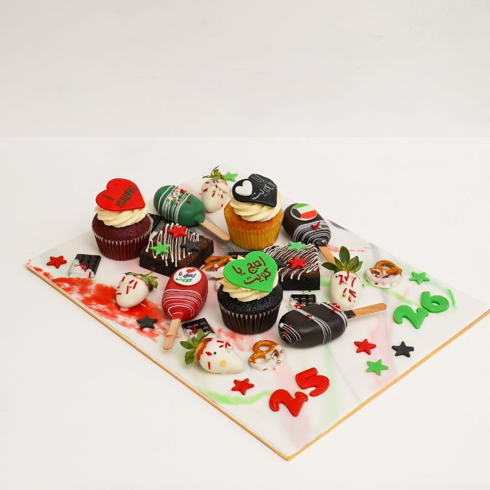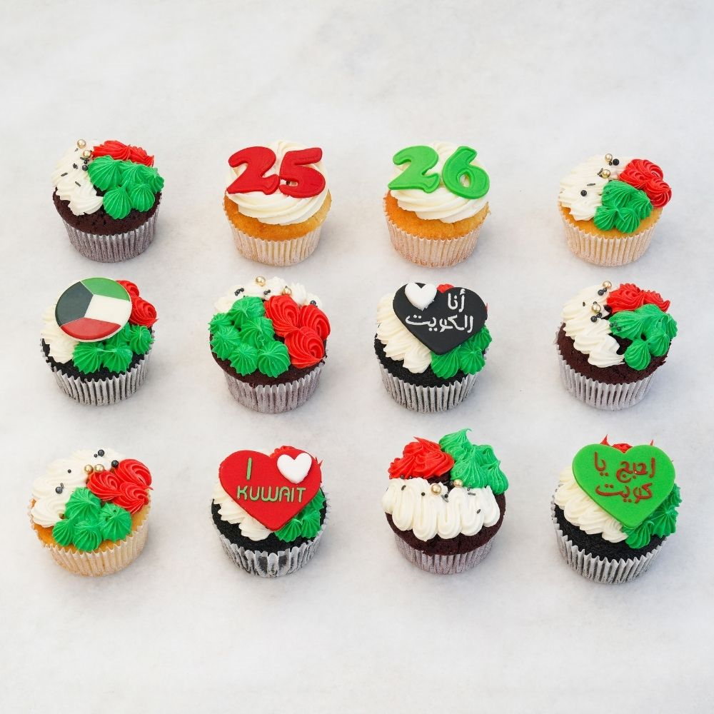 12 كب كيك بنكهات الشوكولاتة والفانيليا والرد فلفيت مزينة للاحتفال بالعيد الوطني يقدم في بوكس.