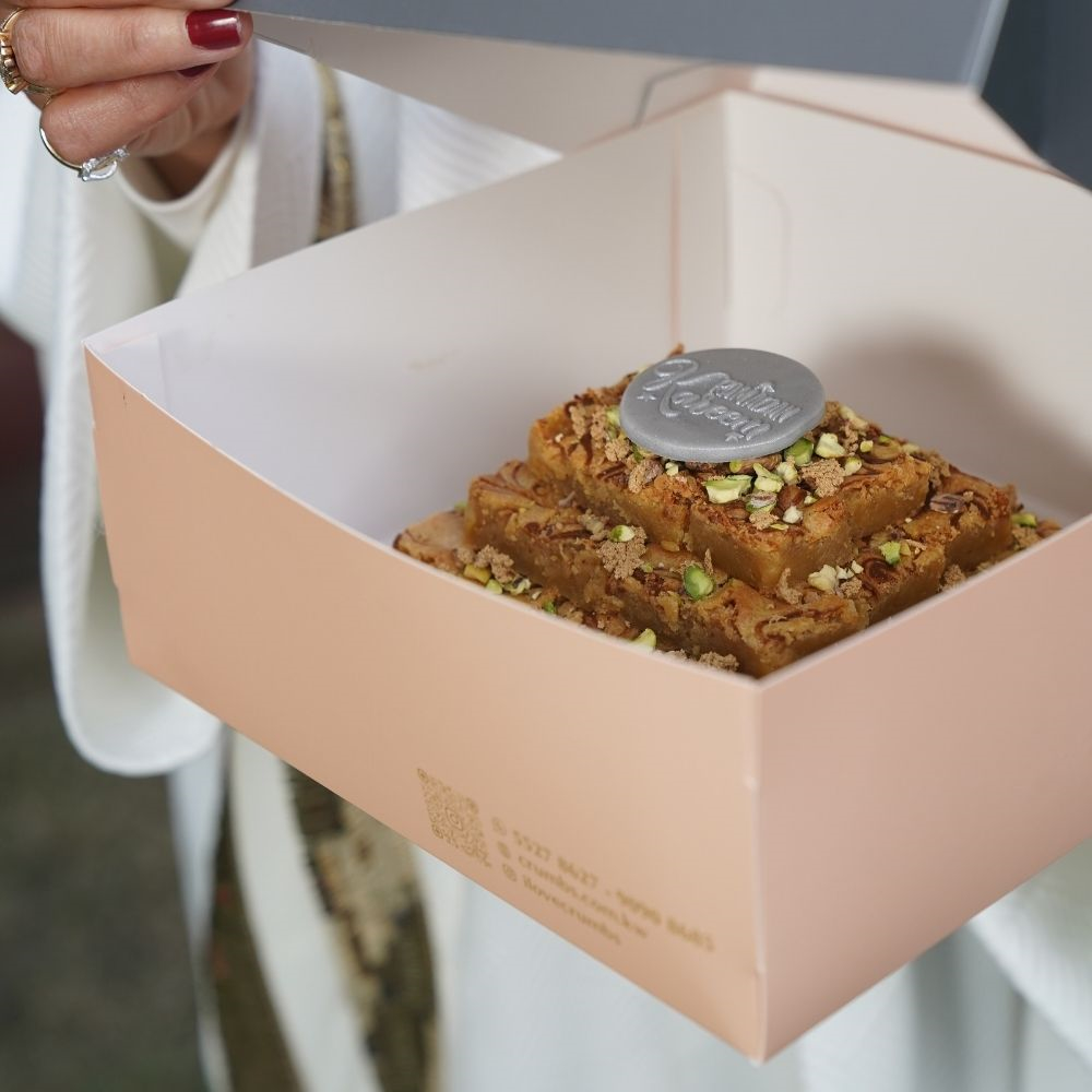 60 مربع ممزوج بالرهشيلا، ومغطى بالرهش والفستق.