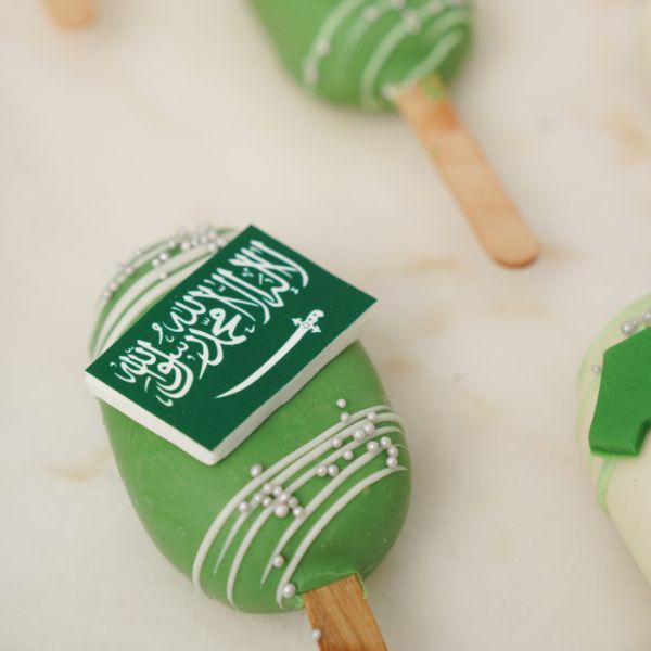 بوكس يحتوي على 12 كيكسيكل بنكهة الشوكولاتة والفانيلا بتزيين مستوحى من السعودية، مغلفة بشكل منفصل.