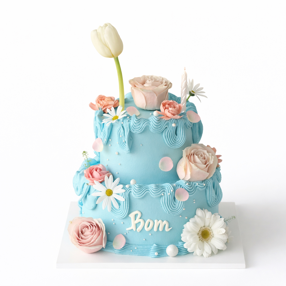 كيكة الأزهار الزرقاء