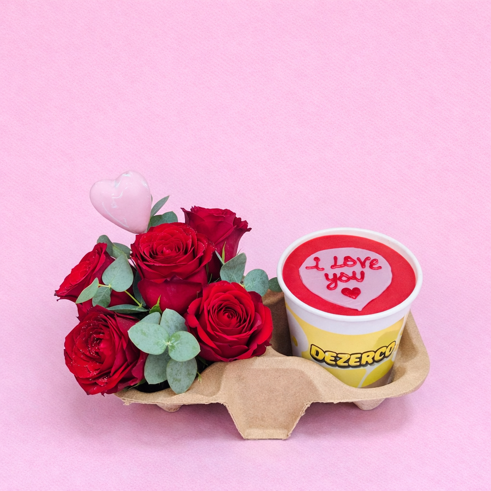 كوب الكيكة مع أزهار الجوري يعبر عن الحب.