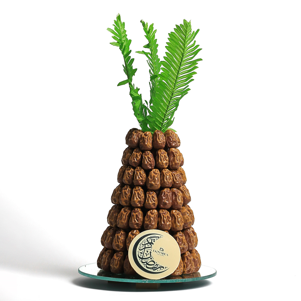 برج رمضاني فاخر يضم شوكولاتة بتصميم تمر مستوحاة من التمور التقليدية، يتميز بنكهات خاصة بالموسم، بوزن كيلو وربع، ليكون مثاليا للهدايا أو للمشاركة خلال الشهر الفضيل.