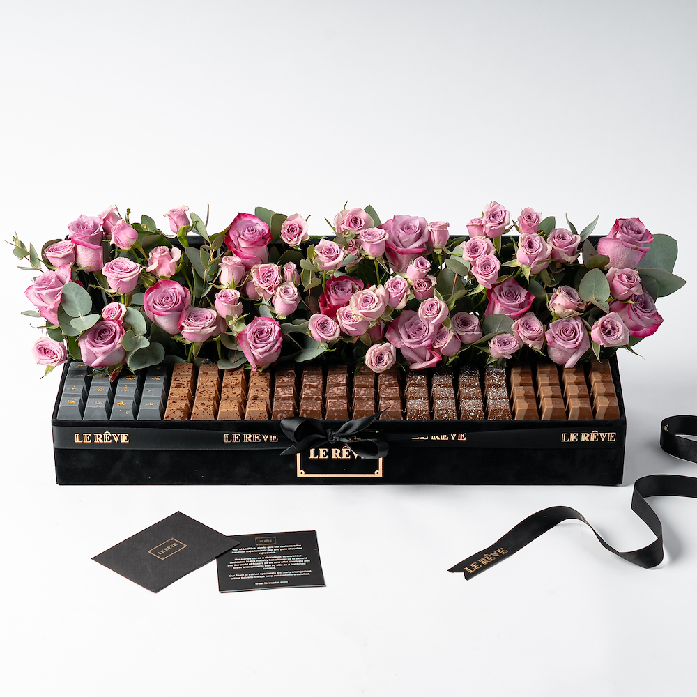 هذه الستاند تحتوي على 1 كيلو من الشوكولاتة وزهور الأوركيد.
