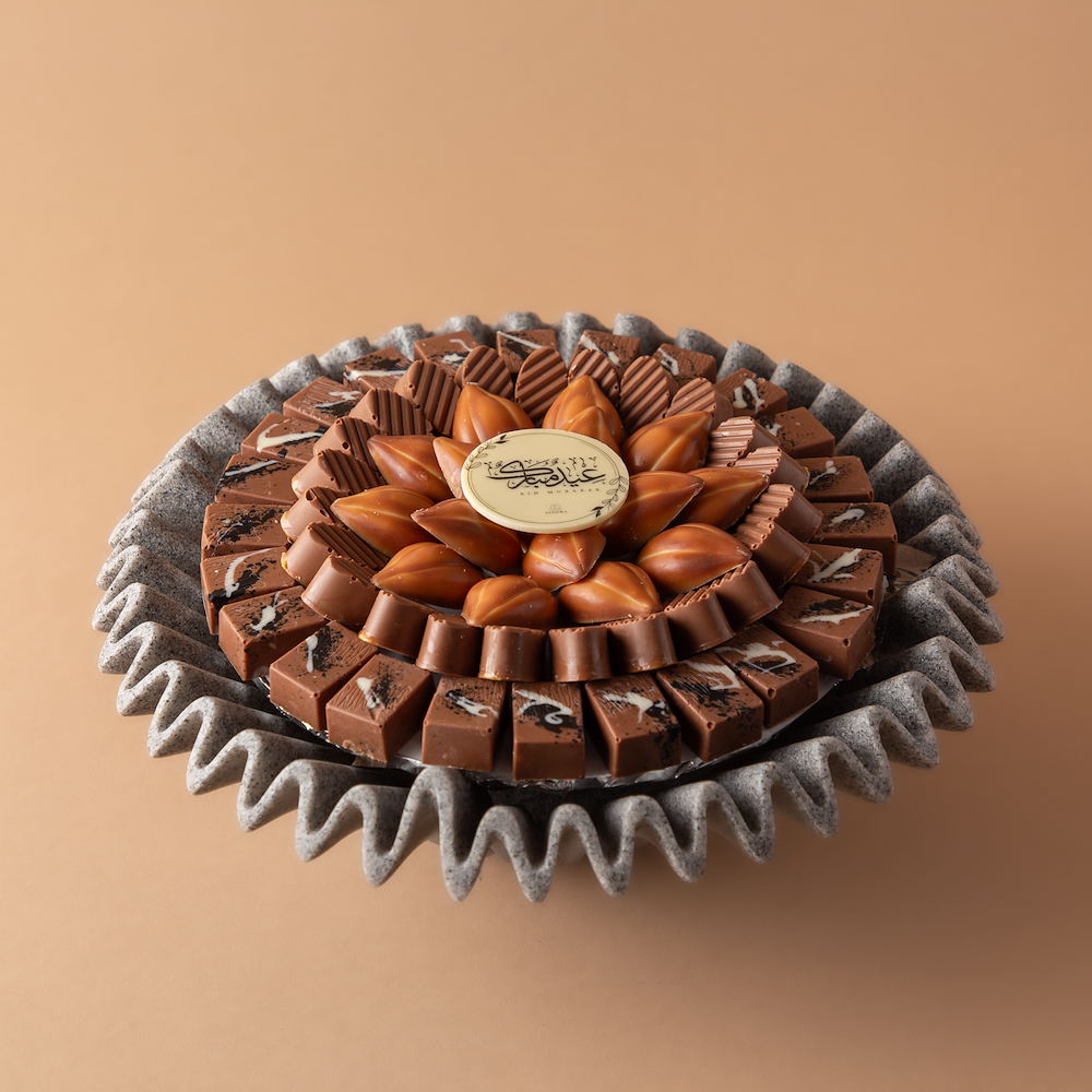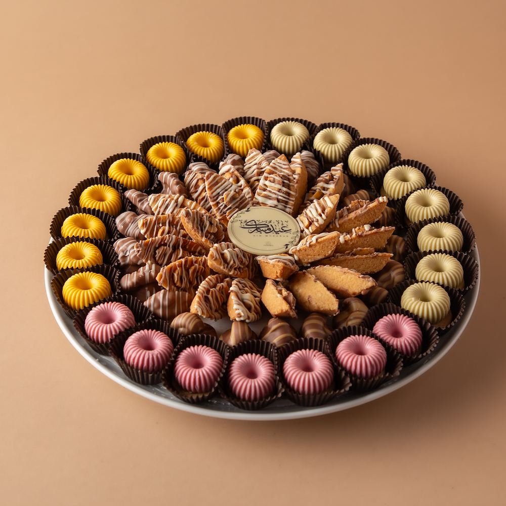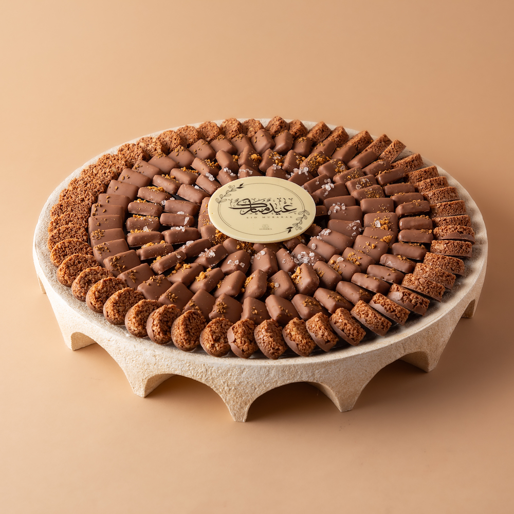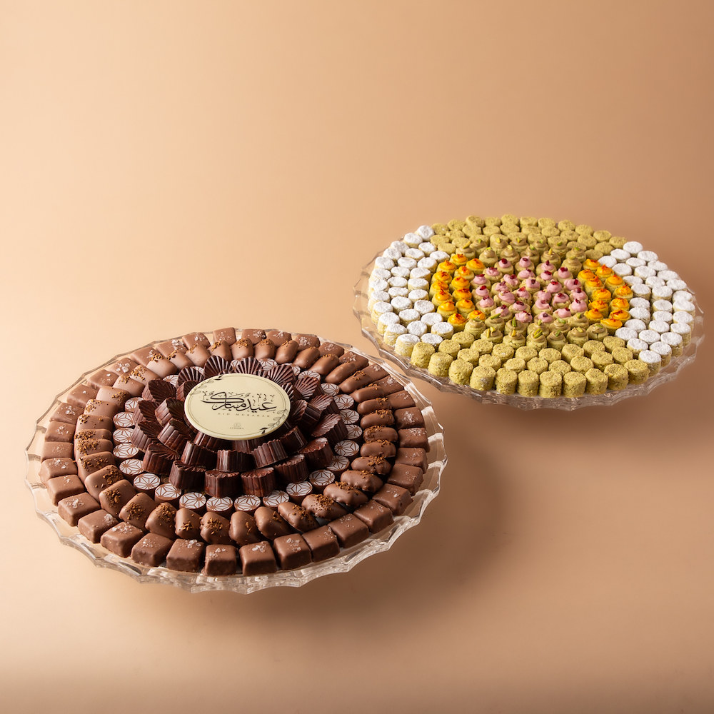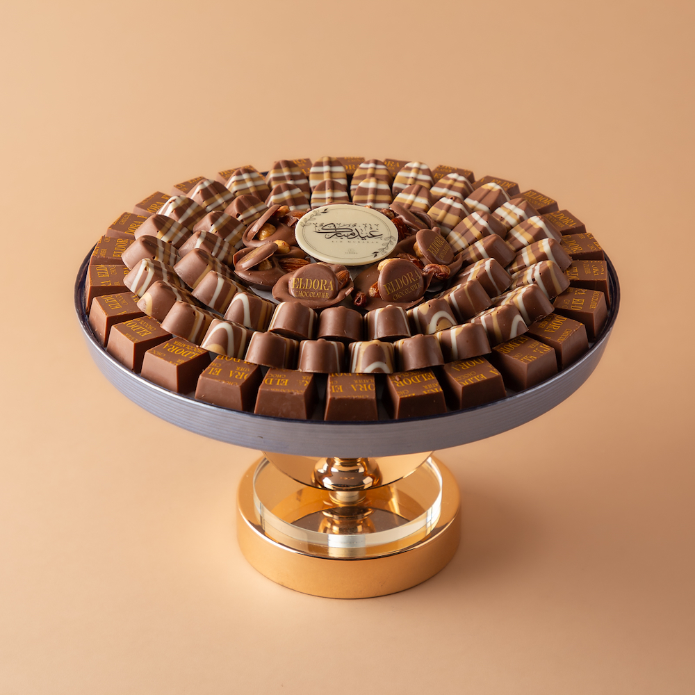صينية كريستال راقيه تحتوي على 1.250 كيلو غرام ترافلز كيوب بنكهات الزعفران , المنوزا، قهوه والتوت.