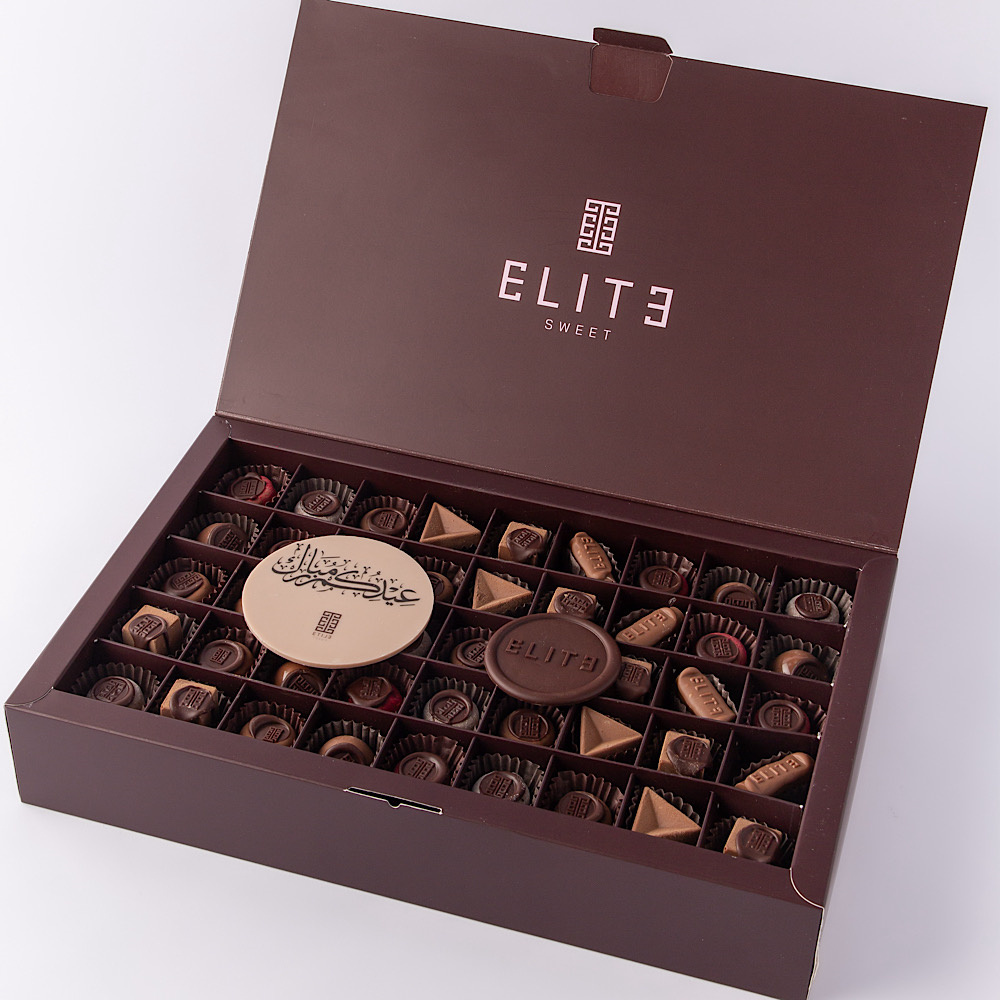 بوكس شوكولاتة فاخر ومميز لمناسبات العيد، يحتوي على مجموعة متنوعة من الشوكولاتة اللذيذة المصنوعة من أجود أنواع الكاكاو لتضفي الفرح على احتفالاتكم.