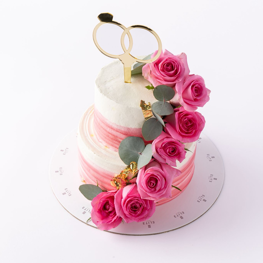 كيكة أنيقة من طبقتين، مثالية ليومكم المميز. تكفي من 12 إلى 15 شخص، وتتميز بمزيج لذيذ من نكهات الفانيلا والشوكولاتة.