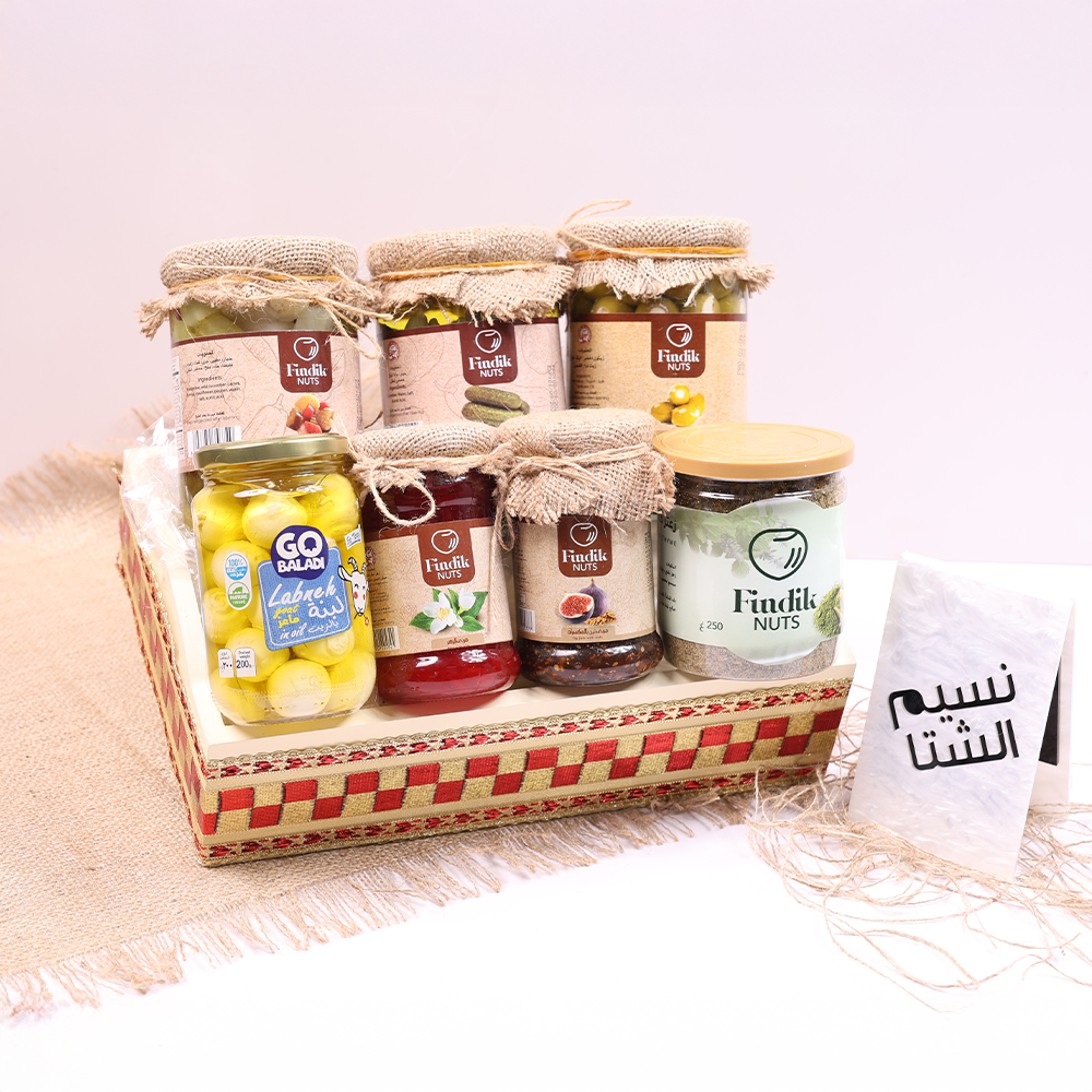 خلطة شتوية انيقة بتصميم يضم كرات لبنة الماعز بزيت الزيتون, زيتون مع لبنة, مربى تين بالمكسرات, مربى الورد, زعتر فلسطيني, مخلل مشكل سوبر, وخيار مخلل فاخر, لتجربة شتوية مليئة بالخير والبركة مع الدفء والمشروبات الساخنة والتأمل في جمال الصحراء الطبيعي.