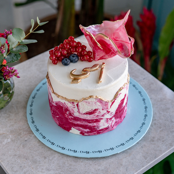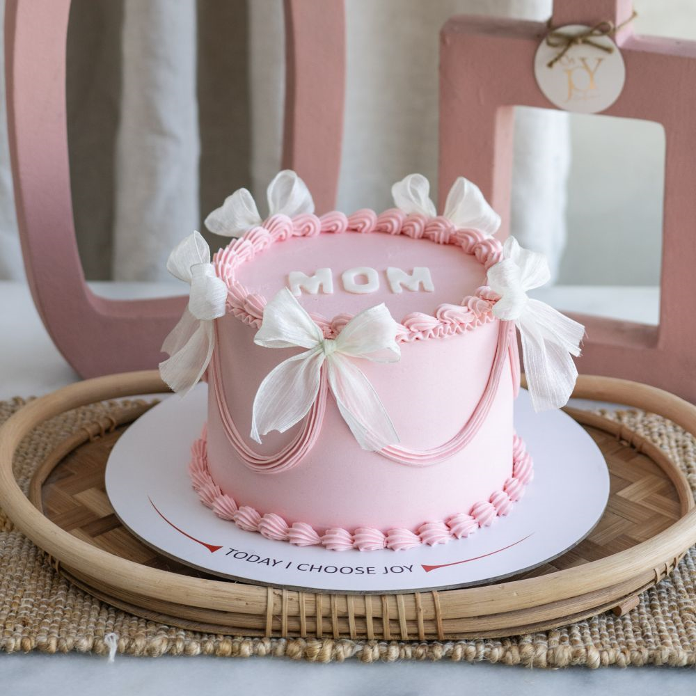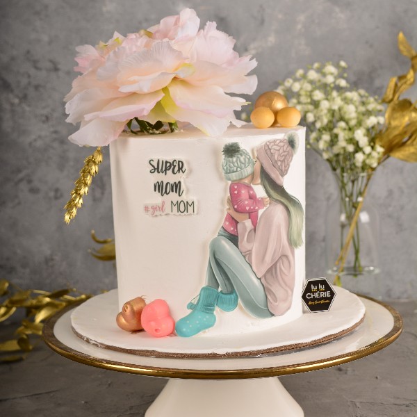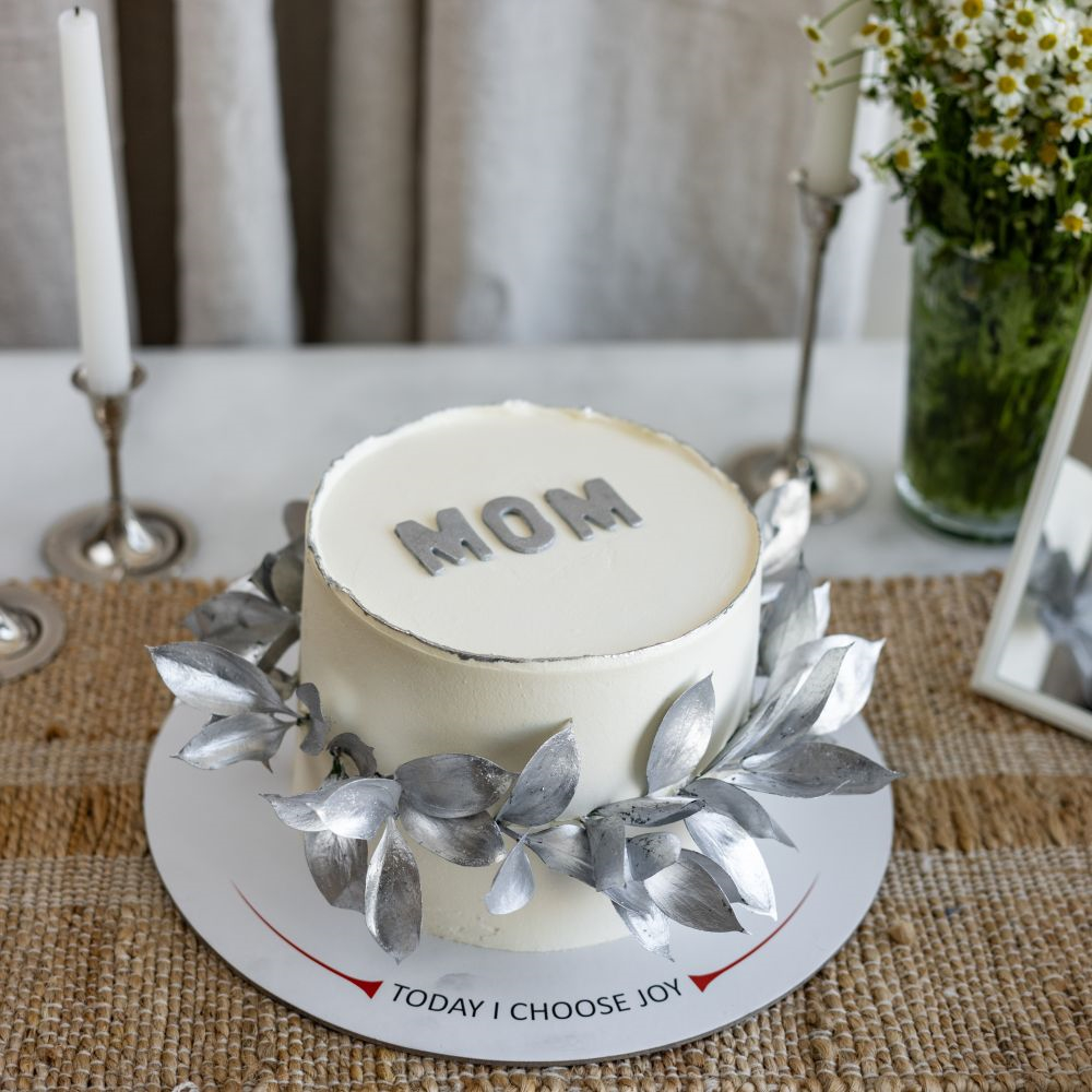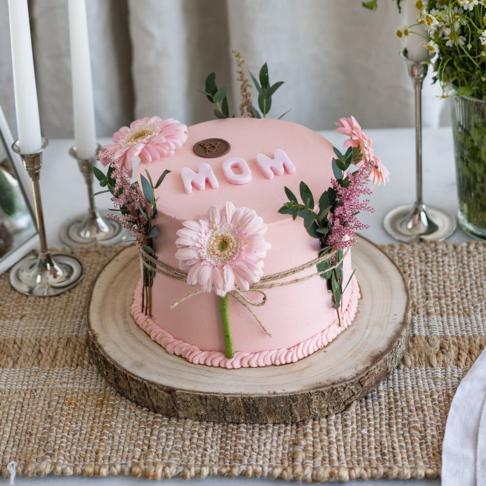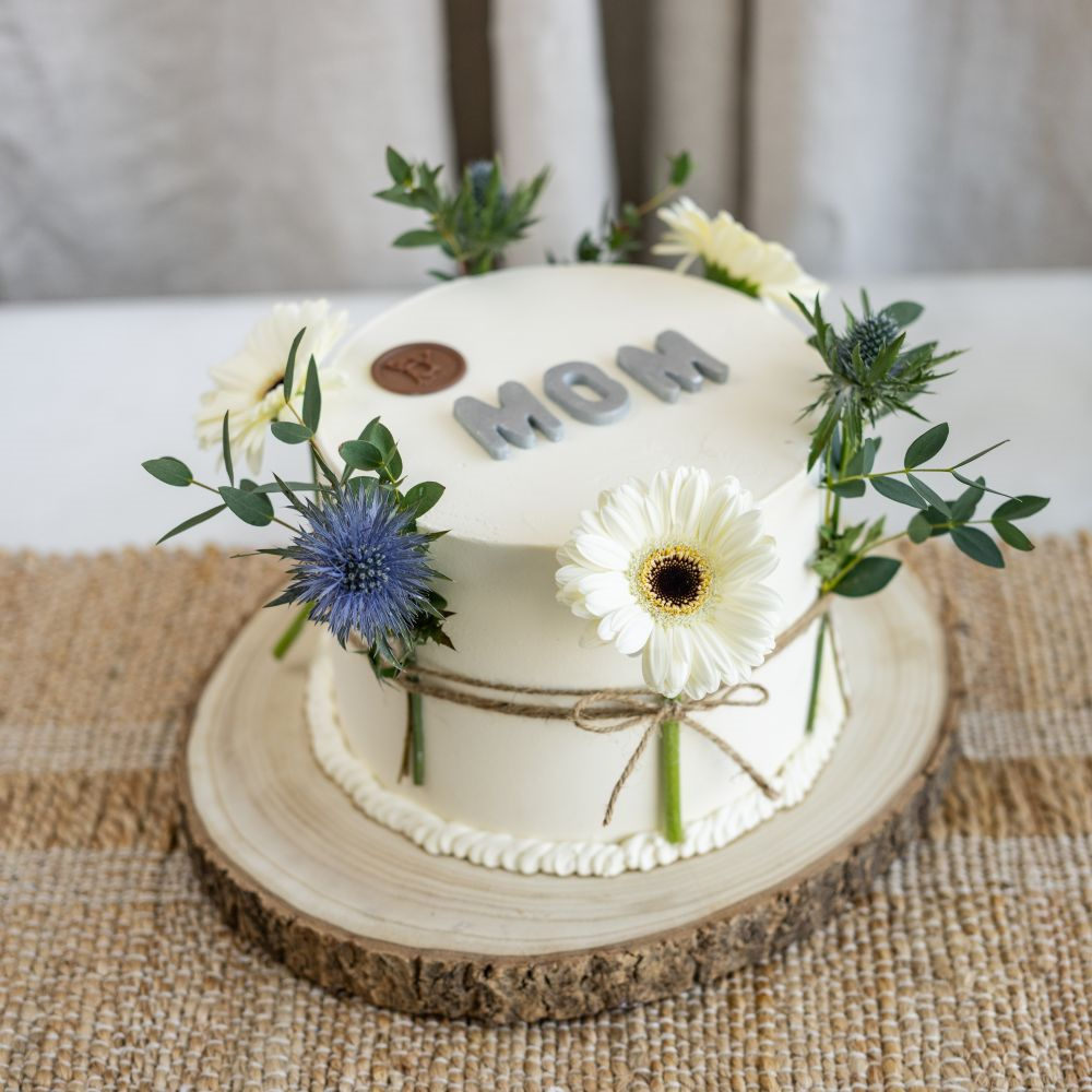 كيكة أمي خاصة مزينة زهور جربيرا بيضاء.