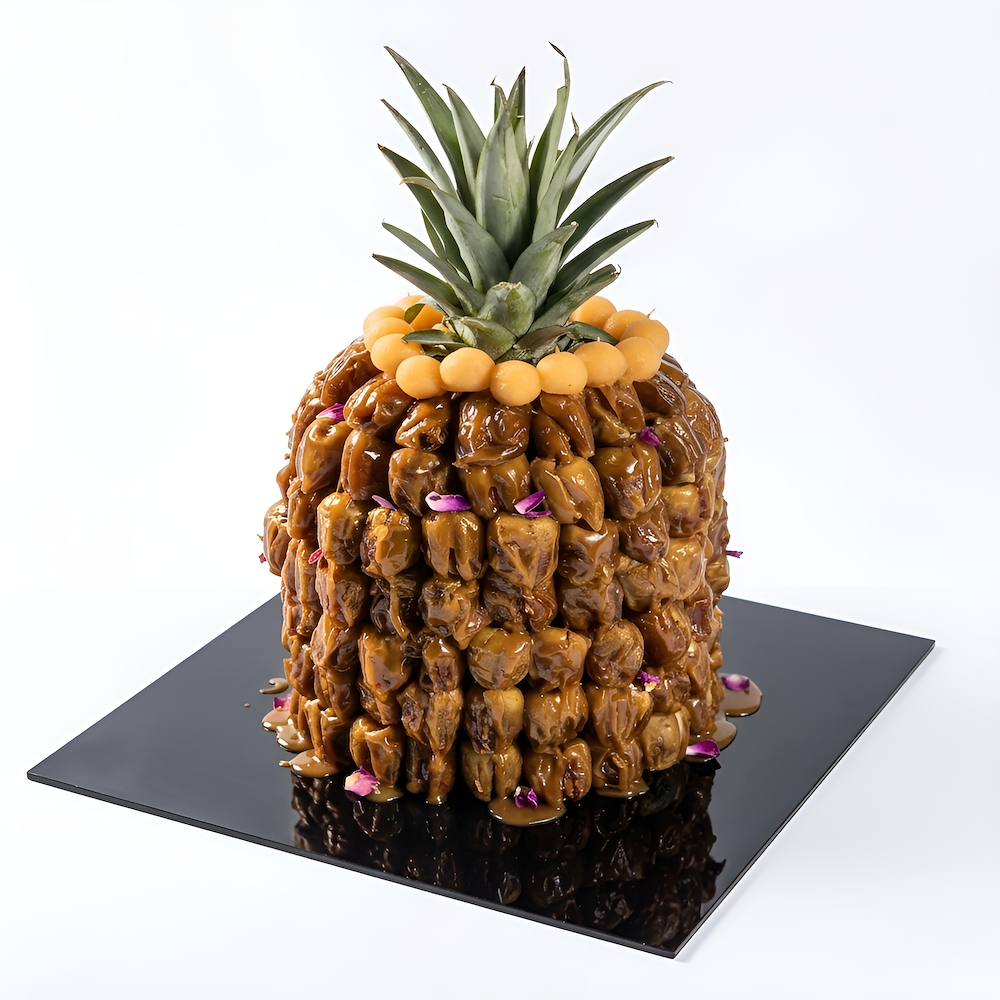 صينية تحتوي على 1.500 كيلو من تمر الرطب مع صوص الكراميل.