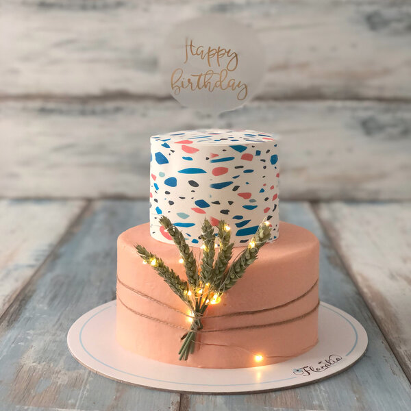 هذه 7 إنش جورميه ميكس كيك بنكهة الشوكولاتة مع الكراميل المملح وفانيليا مع فروستينج كريم تشيز فانيليا مدغشقر، الزينة على الكيك صالح للأكل.