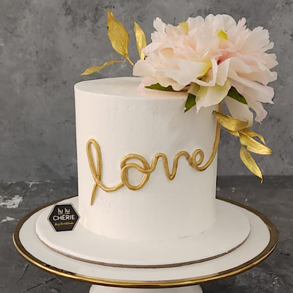 هذه 7-إنش جورميه ميكس كيكة بنكهة الشوكولاتة مع الكراميل المملح وفانيلا مع فروستينق كريم تشيز فانيلا مدغشقر. الكيكة مزينة بالذهب صالح للأكل عيار 24 قيراط مع زهرة إصطناعية.