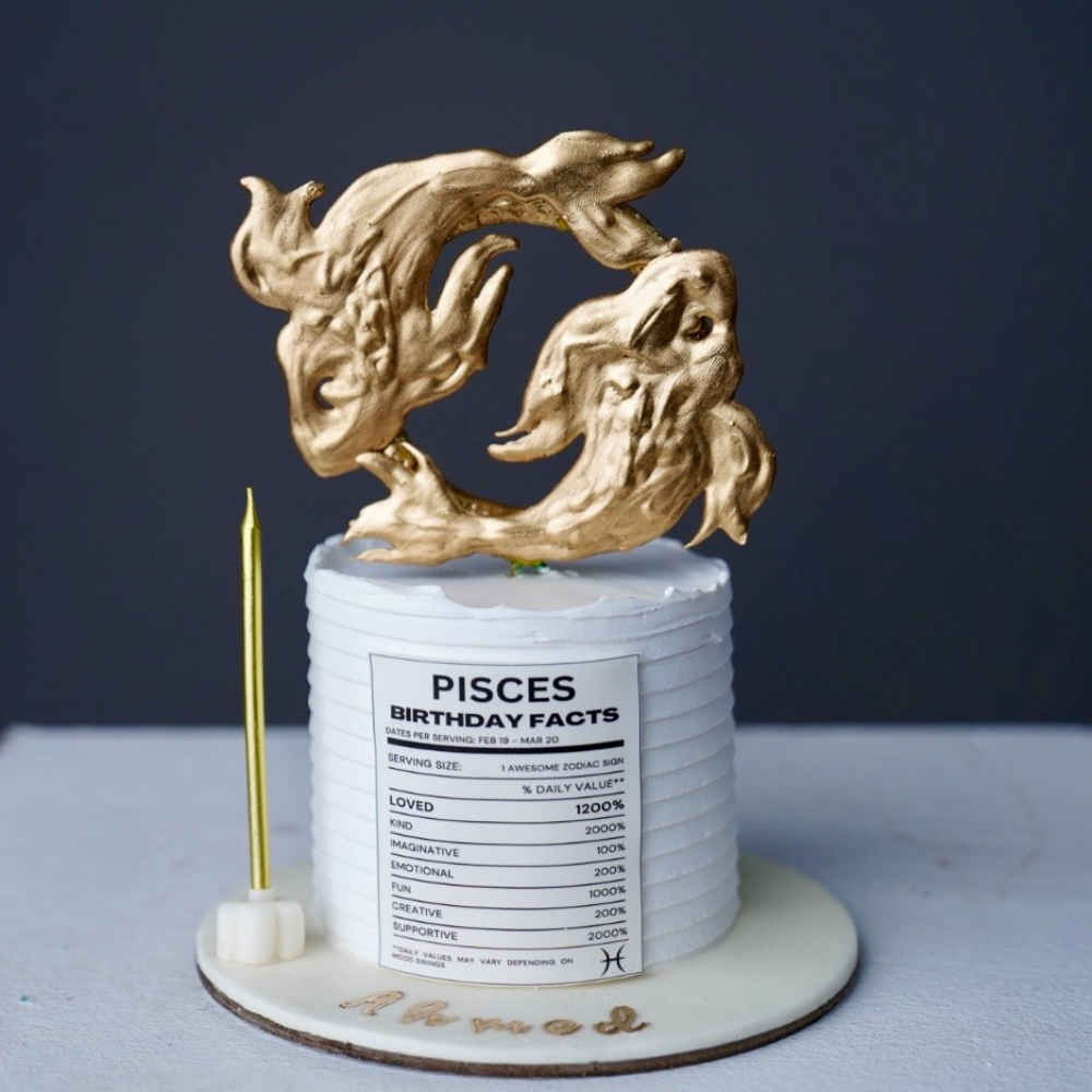 7-إنش جورميه ميكس كيك بنكهة الشوكولاتة مع الكراميل المملح وفانيليا مع فروستينج كريم شيز فانيليا مدغشقر. الزينة على الكيك صالح للأكل. الكيكة مزينة بذهب صالح للأكل عيار 24 قيراط.
