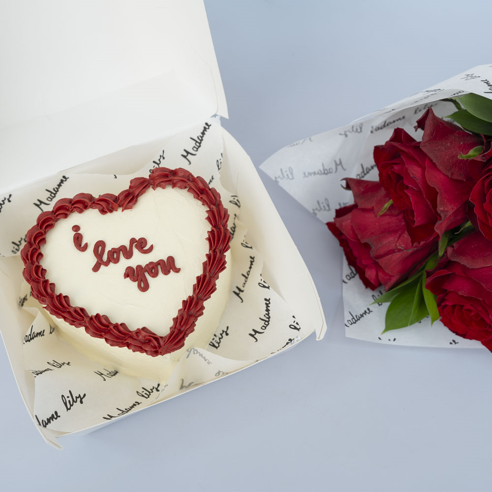 كيكة بينتو لذيذة بالشوكولاتة بحجم 4 إنش، تكفي شخصين. تأتي مع باقة يد من الجوري.