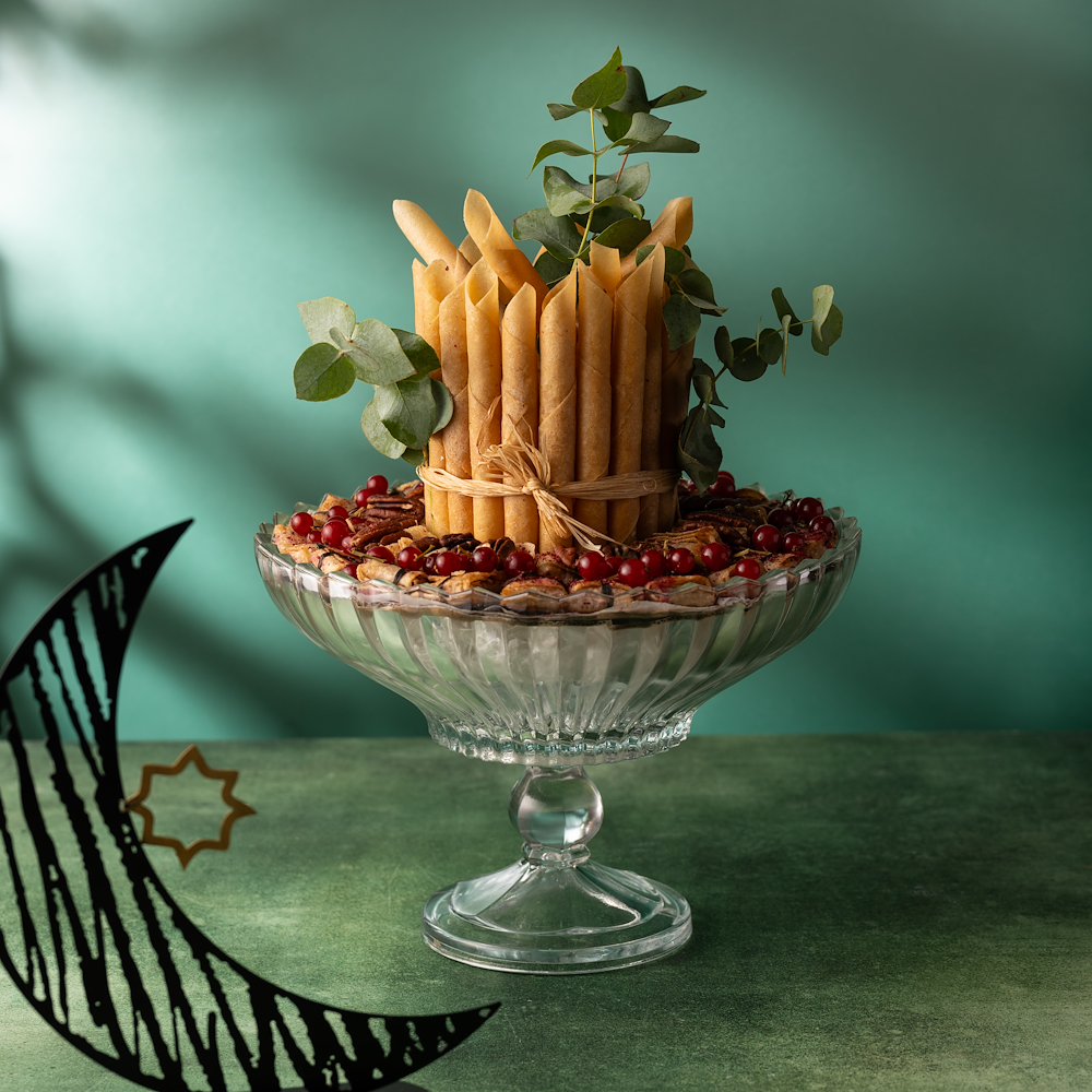 تشيز كيك جيلو مع جيلي مانجو وديكور فواكة.