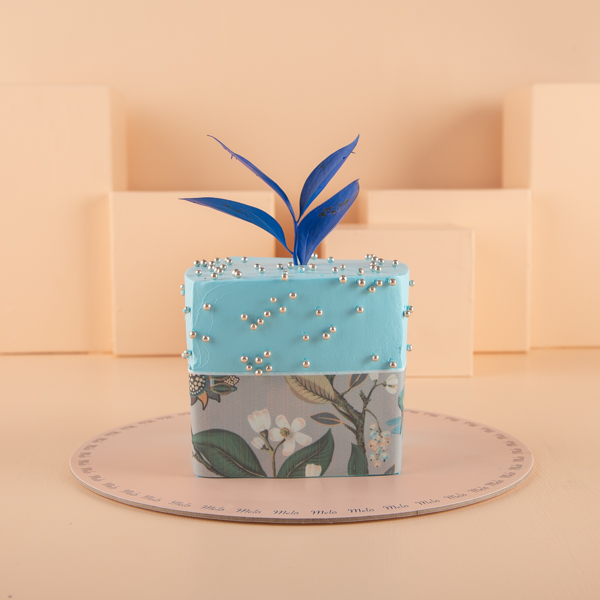 هذه كيكة الفروستنق بتر مزينة وبرقة السكر واللؤلؤ الفضي والراسكوس.