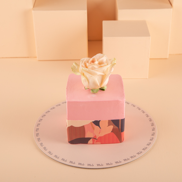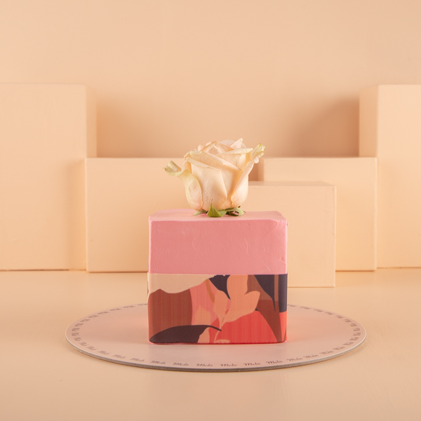 هذه كيكة البتر فروستنق مزينة بنمط ورقة السكر والجوري.