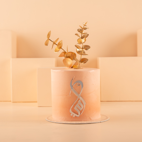 كعكة كريم ناعمة مزينة بأوراق صناعية بيضاء أو خضراء وأكريليك.