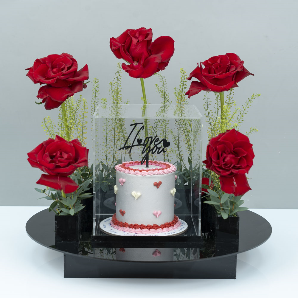 كيكة الشوكولاتة بحجم 4 انش مع الجوري.