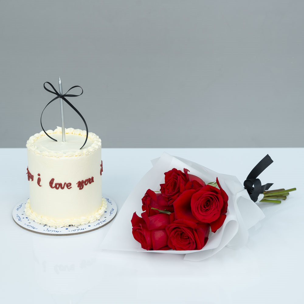 كيكة الشوكولاتة بحجم 4 انش مع باقة من الجوري.