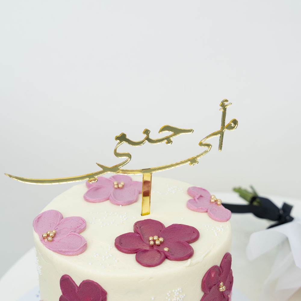 كيكة بتصميم جميل مع باقة الأزهار.