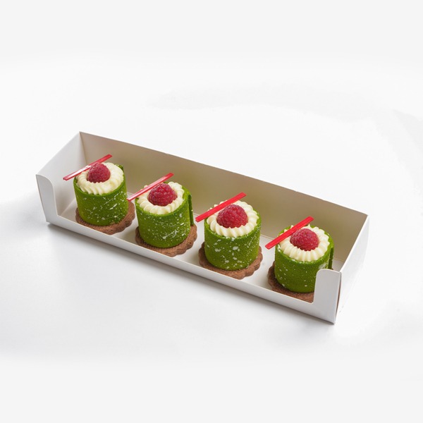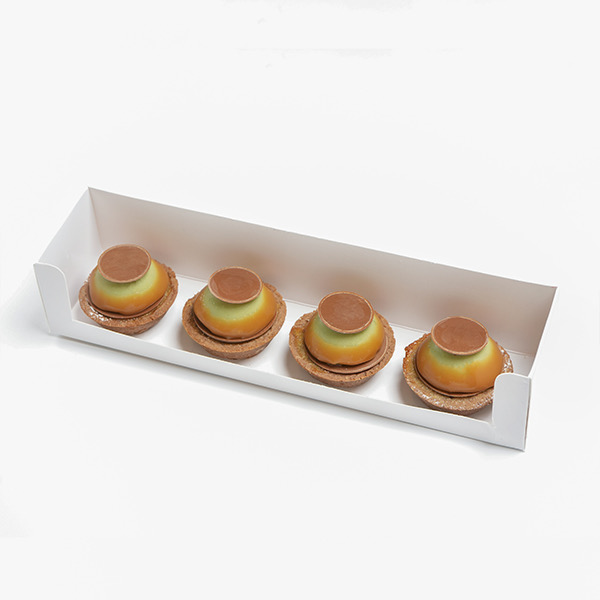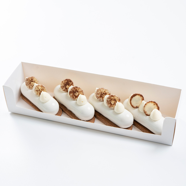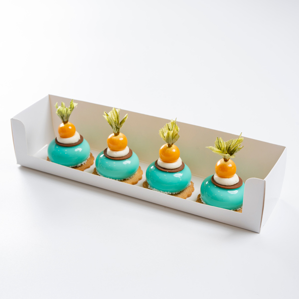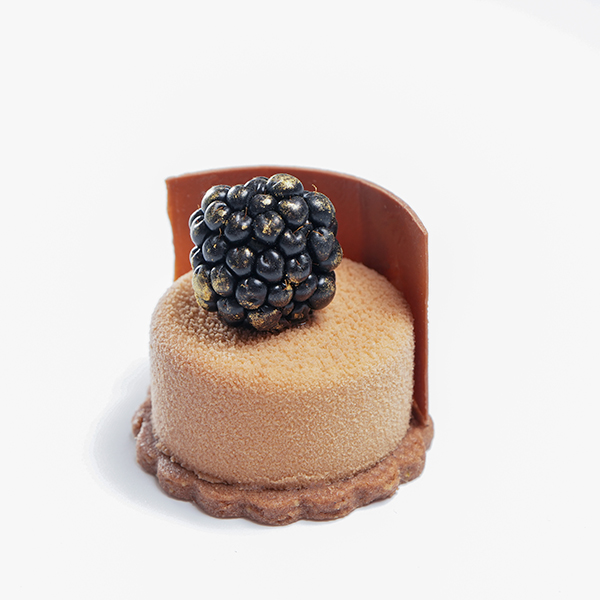 موس الكراميل مع القرفة وبسكوت الشوكولاتة وحبة التوت الأسود.