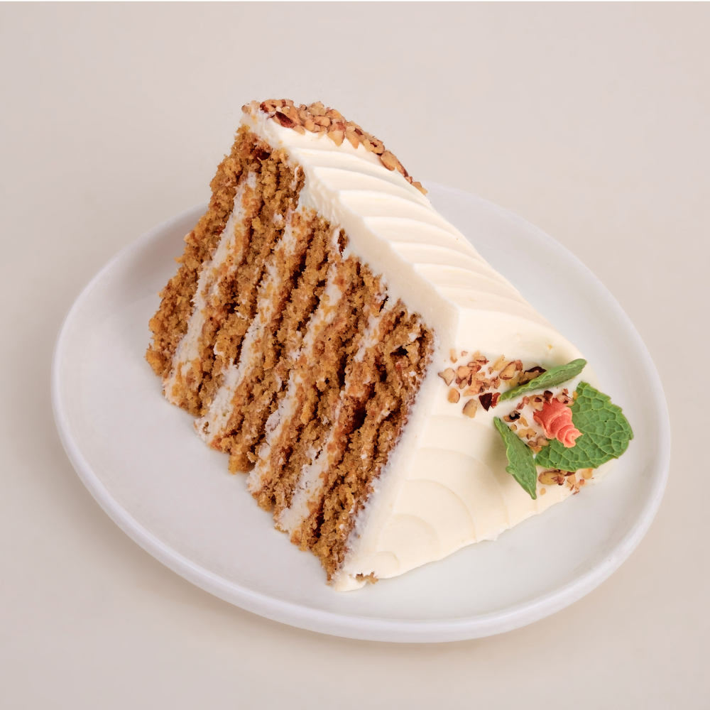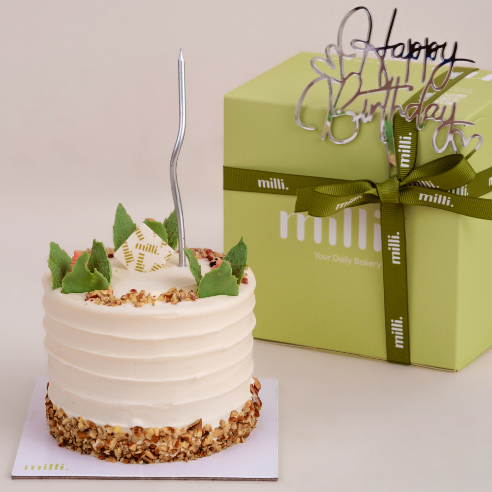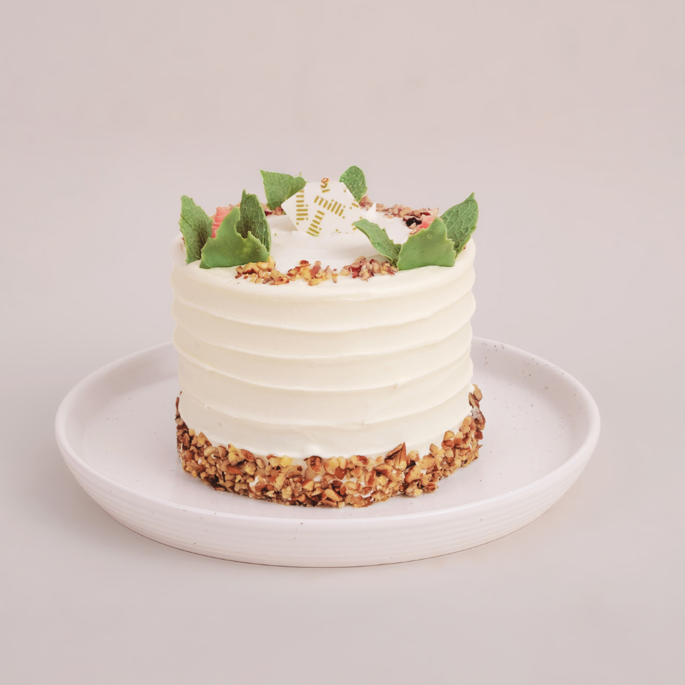 كيكة بينتو الجزر بحجم 4 إنش مع كريمة الجبنة والكراميل أعلاها، تكفي من شخص إلى شخصين.